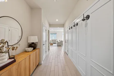 Fabulous newer construction with Solar, 3 bedrooms and a large loft. Beautiful tile plank flooring downstairs in entry, family room, half bath and kitchen. Family room has Shiplap walls, Stainless steel appliance package, built in gas range/cooktop, pantry, large island with breakfast bar and granite slab counters throughout. Tons of natural light shining through. Upstairs has large loft, 2 secondary bedrooms with wall length closets and a full bathroom. The oversized primary bedroom has Shiplap accent wall and is bright and filled with sunshine! Bathroom with walk in closet, sunken tub, separate shower and dual vanity. Convenient upstairs laundry room. Fully landscaped low maintenance backyard with Astroturf lawn, pavers and side yard area. Gated community with walking trail and community park. Minutes to downtown Oakley with restaurants galore and close to delta water ways and easy commute location.