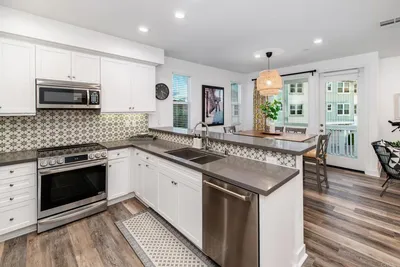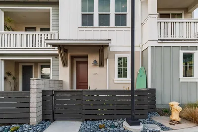 Beautifully upgraded end-unit townhome in the highly desirable Tides community of Oceanside! Ideally situated west of I-5 and less than a mile from the beach, this coastal retreat offers both style and convenience — and it is also an established rental property with a proven track record. The bright, modern kitchen features white shaker cabinetry, quartz countertops, a custom tile backsplash, and newer stainless steel appliances. Enjoy casual dining at the breakfast bar or gather in the open-concept dining area, accented by a custom woven light fixture and pleasant views. The spacious living room is perfect for relaxing or entertaining, with abundant windows that fill the home with natural light. Step out onto the inviting private balcony to enjoy scenic views and refreshing ocean breezes. Upstairs, the primary suite includes an en-suite bathroom and a generous closet. A charming secondary bedroom and a conveniently located stacked laundry closet complete the upper level. The oversized two-car garage provides ample storage space. Just across the street, residents enjoy access to the resort-style community pool and BBQ area. Additional highlights include owned solar, air conditioning, and low HOA fees! Let us welcome you home today!
