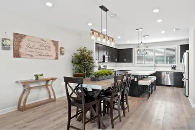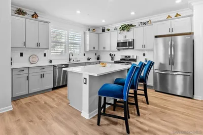 Incredible OCEAN VIEWS and a Private ROOFTOP DECK - RARE 5Bed/4Ba end unit, 2,556 sq ft. 2 Car Garage with LARGE private expansive rooftop deck with SUNSET views. 2018 construction, located in highly sought-after Vista Del Mar community off Pacific Coast Hwy, just a short 5 min walk to BEACH on Oceanside/Carlsbad border. Beautifully decorated, Meticulously upgraded Tri-Level Townhome... Open concept Kitchen/Family room features shiplap, beamed ceilings, custom lighting, upgraded cabinetry, quartz counters with waterfall edge island, stainless appliances, large breakfast bar & eat-in nook, custom window coverings & woodworking with upgraded flooring throughout. Multi-level outdoor deck space, French doors. Professionally decorated. 1st Floor: One Bedroom & Bath, living room/office/exercise area, garage access - 2nd floor: Kitchen/Family room, Guest Bedroom & Bath, coffee bar - 3rd floor: Primary Bedroom & Bath, 2 secondary Bedrooms & Bath with laundry. 4th level: roof top deck. The super sized Primary Bedroom has a gorgeous bath: Tile flooring, lighting, large walk-in shower, a double vanity and quartz countertops dual sinks & huge walk-in closet with access to rooftop deck. Private Association amenities include a resort-like Swimming Pool/Spa/BBQ area. Quiet location, property is conveniently located next to Oceanside/Carlsbad beaches, restaurants, grocery stores & major freeways 5/78/76. A short bike ride to the Carlsbad Village or Downtown Oceanside restaurants, cafes, shopping, and the train station. You MUST SEE this home. Don’t miss this opportunity to own a newly constructed and upgraded home in an exceptional coastal location.