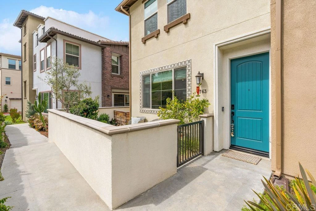 BE PREPARED TO FALL IN LOVE! Welcome to 1763 Laurelwood Way, a stunning end-unit townhome in the highly sought-after Melrose Heights community. Built in 2024 and offering nearly 2,200 sq. ft., this 3-bedroom, 2.5-bath residence showcases extensive upgrades and thoughtful design that will impress even the most discerning buyer. Enjoy lower electric bills with owned SOLAR, A/C, ceiling fans, soaring 9-foot ceilings and custom window treatments. The home also features white oak luxury vinyl plank flooring—no carpet anywhere. The professionally landscaped wraparound patio is a true space of zen; complete with fountain, lush greenery and a smart irrigation system. Inside, the open-concept great room is filled with natural light. The living, dining, and kitchen spaces flow seamlessly, creating an inviting and functional layout. The kitchen is a true showstopper. Featuring leather finished Taj Mahal quartzite, a large island, Zellige tile backsplash, Venetian plaster hood, Perrin & Rowe faucet w/farmhouse sink, Café range, pendant lighting, and elegant English satin gold finishes. Upstairs, the primary suite offers 2 walk in closets, soaking tub, walk-in shower and marble tile flooring. Two additional bedrooms, a full bath with upgraded finishes, and a well-appointed laundry room with custom tile and ample cabinetry complete the second level. The third-floor loft (approx. 24x21) is a bright and versatile bonus space—ideal for a media room, office, gym, or playroom. Additional home highlights include a two-car attached garage prewired for EV charger, a tankless water heater, and a full suite of smart home features: MyQ garage access, video doorbell, smart locks, smart thermostats, and Wi-Fi extenders. Residents of Melrose Heights enjoy resort-style amenities including a pool, spa, fire pit, BBQ areas, greenbelts, and multiple playgrounds. Just around the corner from the fabulous Vista Sports Park and just minutes from shopping, dining, top-rated schools, freeways, and North County’s beautiful beaches.