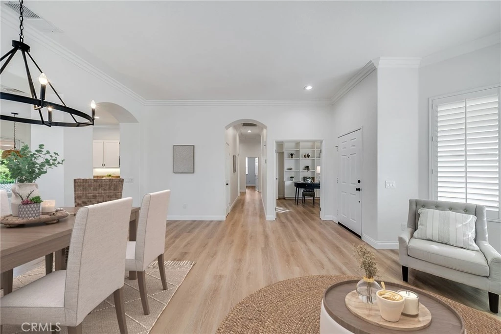 Gorgeous, meticulously maintained single-level home offering a bright, open concept design ideal for both everyday living and entertaining. The expansive living and dining areas flow seamlessly into a gourmet kitchen and adjacent family room with fireplace. The kitchen is a true centerpiece, featuring a large entertaining island, abundant cabinetry, a new GE gas range with convection/air-fryer, plus stainless refrigerator and dishwasher. The oversized primary suite boasts a brand new custom closet system and ensuite bath with dual sinks, separate soaking tub, and walk-in shower. Secondary bedrooms are generously sized, with the fourth bedroom currently styled as a home office with custom built-in bookcase. Recent upgrades include a newer roof, French drain system, upgraded plumbing, crown moulding, custom tile fireplace surround, new lighting, ceiling fans, fixtures, and a newer HVAC system. Exceptional outdoor living features a custom wood fenced yard, expansive brick and concrete patio, covered portico with built-in lighting, built-in BBQ, citrus and avocado trees, updated irrigation, and a powered storage shed. The garage is thoughtfully appointed with a work sink, extensive cabinetry, attic storage and work desk. Ideally located near the intersection of Oceanside, Vista, and Fallbrook, this established and community-oriented neighborhood features winding streets, horse and walking trails, nearby schools, and multiple parks including Guajome Regional Park with access to the San Luis Rey River Trail to the beach. Enjoy quick access to shopping, dining, major highways, and coastal destinations. Just minutes to Oceanside beaches, Carlsbad, Encinitas, San Clemente, Temecula, and San Diego.