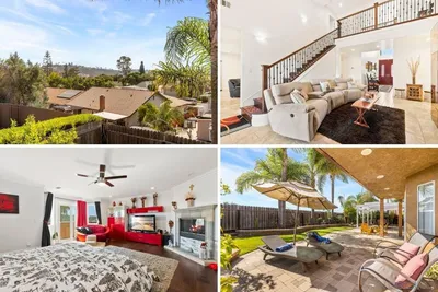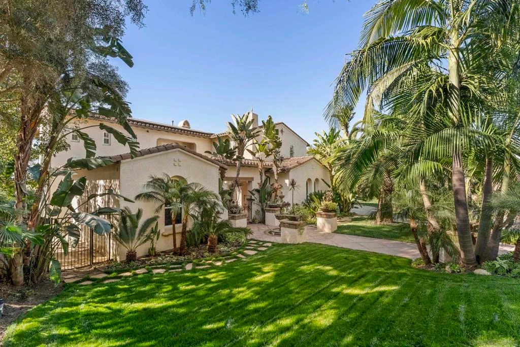 **COASTAL BREEZES. PANORAMIC VIEWS. OVER AN ACRE.** Set on just over an acre in a private enclave of estate homes, this property offers a rare combination of space, privacy, and sweeping sunset views across rolling hills. Elevated and open, the home captures a sense of quiet separation that’s difficult to find. The grounds unfold with expansive lawn and multiple areas to gather, while the natural slope beyond adds depth and flexibility for future use. The backyard is designed for both everyday living and entertaining, featuring a pergola-covered patio, outdoor fireplace, built-in BBQ, and mature landscaping that frames the setting. A gated courtyard entry with fountain creates a strong sense of arrival. Inside, approximately 4,850 sqft offers scale and versatility, with formal living and dining rooms, a private office, and a spacious family room with breakfast area that connects to the outdoors through multiple sets of French doors. All four bedrooms are en suites, including a separate-entry casita ideal for guests, extended family, or a private workspace. The primary suite is generous in size with dual water closets and ample counter space. The centrally located kitchen features granite countertops, stainless steel appliances, and an oversized island, opening to the home’s main gathering spaces. Owned solar and three A/C units provide efficiency and comfort. Move-in ready and highly livable, with a setting and layout that offer both immediate enjoyment and long-term flexibility. Bonsall Elementary School is located just down the street, as is Luiseno Park.