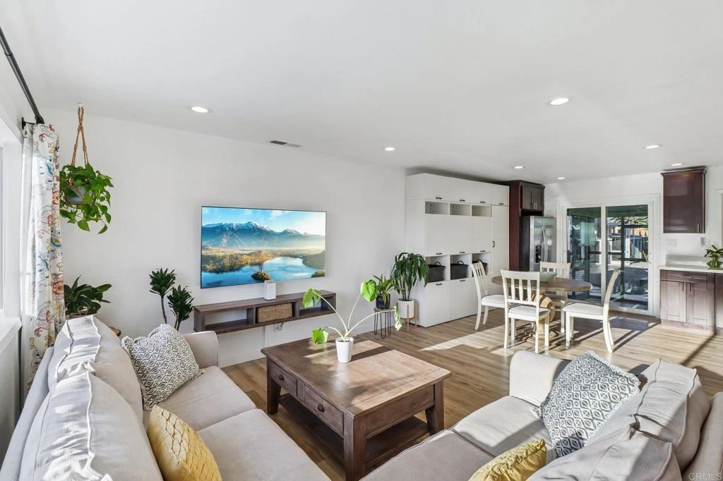 Welcome to this beautifully updated 3-bedroom, 2-bathroom home ideally located in the heart of Oceanside. Thoughtfully designed and full of charm, this home features an open-concept living room and kitchen filled with natural light, perfect for both everyday living and entertaining. This property stands out with its versatile layout, including an attached studio with its own kitchen, bathroom, and laundry—ideal for guests or multigenerational living. In addition, a detached bonus space in the backyard offers the perfect setup for a home office, gym, or creative studio. Major upgrades include a newer roof (2023), updated electrical and plumbing, air conditioning, a full interior remodel, and upgraded underground sewer system including main and kitchen lines. Benefit from solar panels designed for efficiency and lower energy expenses. The front and backyard have also been beautifully redesigned, enhancing both curb appeal and outdoor enjoyment. Step outside to your private, resort-style backyard featuring lush landscaping, a Trex composite deck with bar seating, a 10x14 in-ground trampoline with sump pump, and a relaxing hot tub. Two storage sheds on the property, including a custom-built shed completed (2023). Enjoy peaceful east-facing mountain views and stunning sunrises right from your own patio. A rare opportunity to own a move-in-ready home with flexible living spaces and standout features in a prime location.