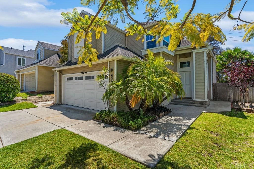 Welcome to 4221 Via Tercero in the highly sought after community of Rancho del Oro. This beautiful two story home offers an exceptional opportunity in a prime Oceanside location. Step inside to vaulted ceilings, dual pane vinyl windows, and abundant natural light, creating a bright and open feel throughout. The main level showcases real birch hardwood flooring, a cozy fireplace, and a modern kitchen with an oversized island, birch wood cabinetry, and stainless steel appliances. A guest bathroom, dedicated laundry room with washer and dryer, and direct access to the two car garage complete the main level. Upstairs offers newer carpeting and a spacious primary suite with ample closet space and an ensuite bath featuring dual sinks and a walk in shower. Two secondary bedrooms share a Jack and Jill bathroom. One includes a walk in closet, while the other is currently configured as an office or loft. A builder option provides the flexibility to convert this space into a true third bedroom by adding a door and finishing the wall. The outdoor space includes a covered wood deck, mature fruit trees, and plenty of room to relax, entertain, or play. The lot extends beyond the fence line and spans just over 9,000 square feet. Residents enjoy low HOA fees and no Mello Roos. The location offers convenient access to parks, recreation, shopping, dining, local beaches, Oceanside Harbor, and downtown Oceanside, along with nearby commuter routes.