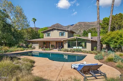 Set on a quiet cul-de-sac just moments from the heart of Ojai, this thoughtfully reimagined turnkey residence offers a rare blend of privacy, comfort, and connection to the valley's natural beauty. Framed by sweeping views of Chief's Peak and the iconic Topa Topa Mountains, the setting is both peaceful and inspiring. Designed for seamless indoor-outdoor living, the home opens to a private backyard that is truly an entertainer's dream, complete with a fabulous pool and spa, fire pit, and covered outdoor lounge ideal for year-round enjoyment. Surrounded by beautiful mature gardens and trees, the grounds feature nine orange trees alongside lavender and rosemary, creating a lush, sensory-rich landscape that reflects Ojai's signature charm. The extensively remodeled interior blends warmth and functionality with timeless style. Saltillo tile flooring, custom finishes, and an open-concept layout anchor the main living spaces, while a charming fireplace and integrated sound system enhance everyday comfort. At the heart of the home is a well-appointed chef's kitchen with granite countertops, stainless steel appliances, and a generous island designed for both daily living and effortless entertaining. The upper level offers exceptional flexibility, currently configured as a private ADU with its own entrance -- ideal for family and friends, or creative use. This expansive space can also be reimagined as a fourth bedroom or a stunning primary retreat, offering versatility to suit a variety of lifestyles. Hardscape landscaping, an owned solar system, a designer garage with workshop, updated systems, and curated exterior enhancements make for convenient living. Located just minutes from Ojai's shops, dining, hiking trails, and golf course, this splendid property has it all! Move right in and Welcome Home!