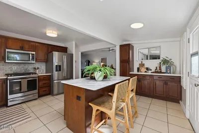 Open Friday, March 20th from 9:30-12pm and Sunday, March 22nd from 1-3pm. This delightful California bungalow is ideally located in the heart of Ojai's charming Meiners Oaks neighborhood, just minutes from beloved local restaurants and the scenic Ventura River Preserve. Bathed in natural light, the home features an open floor plan that creates an effortless indoor-outdoor flow--perfect for enjoying Ojai's ideal climate. A spacious front porch invites slow mornings with coffee or relaxed evenings spent with friends, while the dining area opens to a charming screened-in porch for easy al fresco living. The primary bedroom is thoughtfully positioned apart from the guest bedroom and bath, offering privacy and comfort, with conveniently located indoor laundry. Recent upgrades include newer kitchen appliances, a newer HVAC system, and upgraded windows, lighting, and ceiling fans throughout. The detached garage features a finished room ideal for a home office or studio, as well as the opportunity for an ADU conversion. A private and generously sized yard is framed by majestic oak trees and dotted with fruit trees, with a welcoming deck perfect for entertaining or unwinding in nature. A true Ojai gem, ready to welcome you home.