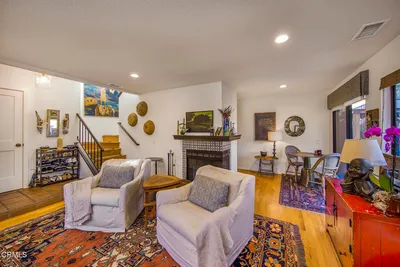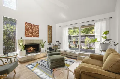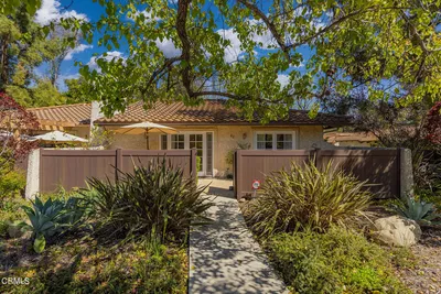 This beautifully appointed 2-bedroom, 2-bath home is tucked into one of Ojai's most beloved communities, the Hitching Post.The heart of the home is the open living and dining area. Vaulted ceilings, wide-plank hardwood floors, and a cozy fireplace offer the kind of warmth and character rarely found in condo living. The floor-to-ceiling built-in shelves are perfect for the avid reader or for displaying a curated collection. Sliding glass doors connect the indoor entertaining space to a private patio and garden.The updated kitchen features maple cabinets and a charming vintage O'Keefe and Merritt gas stove alongside modern stainless steel appliances. The kitchen window looks out to the front patio, with the Topa Topa mountains visible in the distance.The spacious primary bedroom is a true retreat, complete with vaulted beamed ceilings, patio access, and an updated en suite bath appointed with travertine tile, a deep soaking tub, and a separate walk-in shower.Located a short drive from local restaurants, independent shops, and hiking trails whether you head toward downtown Ojai or wander into Meiners Oaks.