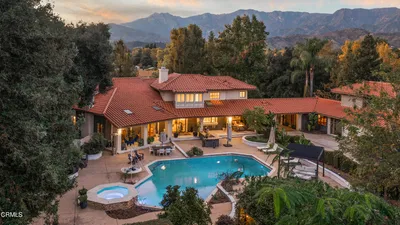 RemarksSpectacular 2024 remodel in prestigious Persimmon Hills Estate. A rare opportunity to acquire a gated 5.33-acre legacy property offering approximately 6,000 sq ft of refined living space, complemented by an exceptional 1,800 sq ft six-car garage and workshop. Tucked discreetly within the heart of downtown Ojai, the estate delivers an increasingly rare combination of true privacy, established landscaping, and immediate access to town amenities.The residence presents a timeless modern farmhouse aesthetic, thoughtfully curated by leading designers with an emphasis on enduring materials and architectural integrity. Features include Italian appliances, Brazilian stone, buck-skinned wood accents, marble slab showers, marble and travertine flooring, Douglas fir beams and detailing, cedar siding, and a distinctive all-copper roof, a testament to both craftsmanship and longevity. Smart-home technology, gated entry, and a secure private community provide comfort, discretion, and peace of mind.Designed to accommodate both elegant entertaining and everyday retreat, the home offers two primary suites, four fireplaces, a library, media room, living and family rooms, a wine cellar with tasting room, and a dedicated massage room. The expansive garage and workshop allow flexibility for collectors, hobbies, or future adaptation.Completed in 2026, a separate guest quarters or artist studio is privately positioned to capture elevated views, offering a secluded retreat ideal for guests, creative pursuits, or quiet work.The park-like grounds are supported by a private well and include a pool and spa, bocce court, volleyball court, multiple gathering areas and gazebos, a family orchard, and a nine-hole putting green with driving range. Extensive custom windows integrate the landscape into daily living, framing sweeping views of Topa Topa and Black Mountain.A rare and enduring Ojai estate offering privacy, craftsmanship, and location without compromise.