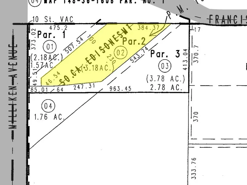 The subject property is a ±3.18 acre parcel of land (APN #0238-152-02) located just southeast of the intersection of E. Francis Street and Milliken Avenue in the city of Ontario. This entire property is subject to an easement with Southern California Edison that is due to overhead high voltage transmission lines. There is a Verizon Wireless cell site on the subject property, Verizon has been a tenant since 2004. The newest Verizon lease started on April 1, 2024 and runs for 5 years. Verizon also has three 5-year extensions. The current income from this lease is $2,575 per month ($30,900 annually) with rent increases of 3% yearly. Verizon Wireless is also responsible for complying with the Brush Code requirements and clearing any overgrown brush at the property twice a year at their sole cost and expense. Zoning on this property is UC (Utilities Corridor). The UC zoning district is consistent with, and implements, the Open Space-Nonrecreational land use designation of the Policy Plan component of The Ontario Plan. The allowable and permitted uses for the subject include Outdoor Vehicle Storage, Plug-In Electric Charging Facilities,Agriculture and Garden/Nursery uses.