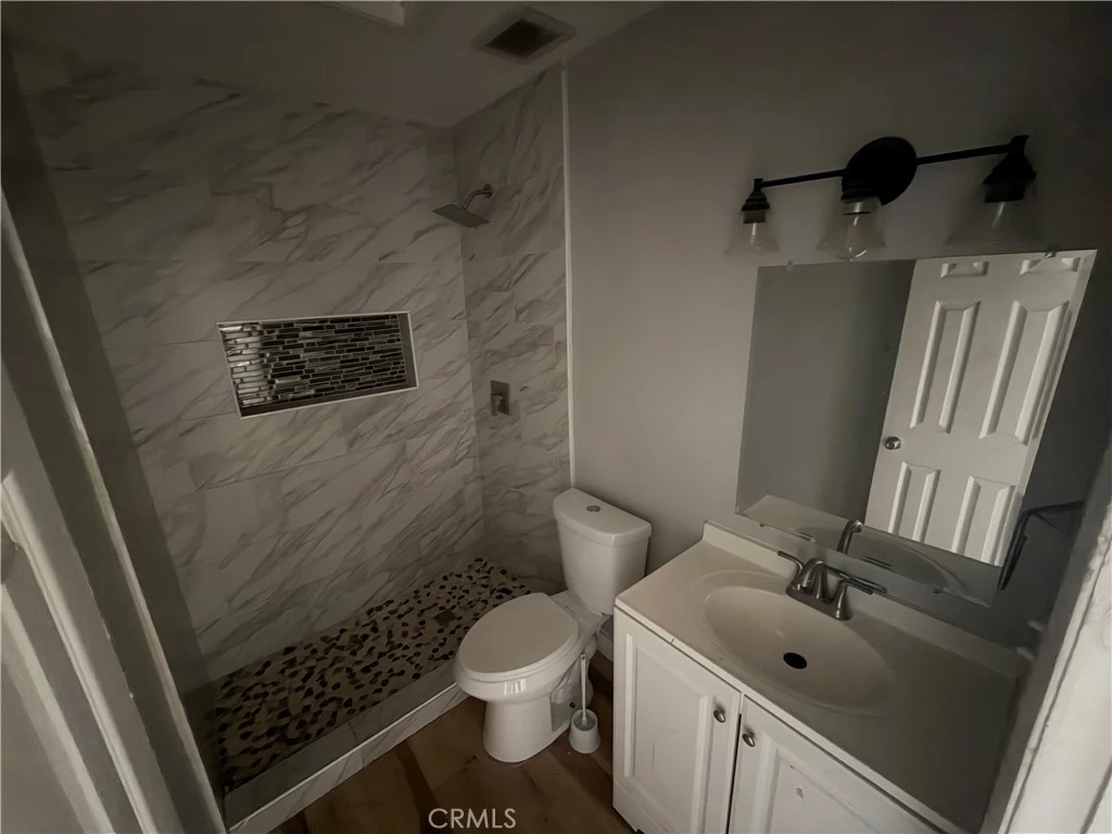 Well-maintained 3 bedroom, 1 bathroom single-story home featuring modern updates and a functional layout. Interior highlights include wood-style flooring throughout, fresh paint, recessed lighting, and a bright living area with plenty of natural light. The kitchen offers updated countertops, ample cabinet space, and essential appliances, with convenient access to the main living areas. All three bedrooms are comfortably sized with good closet space. The remodeled bathroom features a walk-in shower with upgraded tile finishes. Additional features include an indoor laundry area, efficient cooling, and an attached garage providing parking and extra storage. Enjoy a private backyard/patio space, perfect for outdoor use. Conveniently located in the City of Ontario near shopping, dining, schools, and major commuter routes.