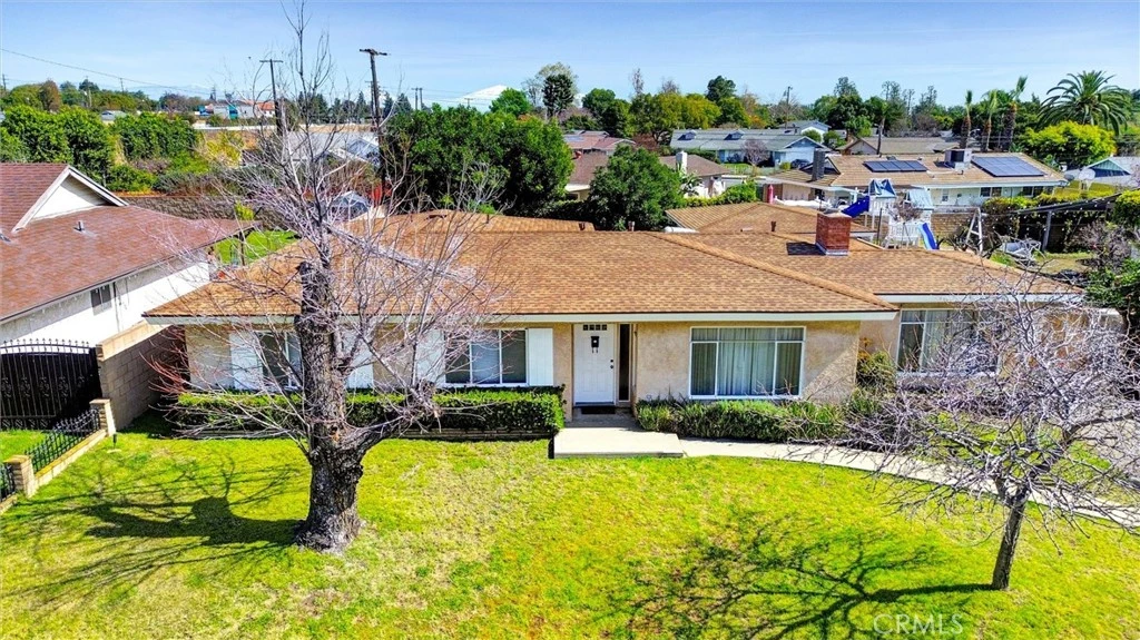 Vintage Residence in the Historic Heart of Ontario! Gracefully positioned at the end of a quiet cul-de-sac in one of Ontario’s most coveted, tree-lined neighborhoods, this distinguished single story 4-bedroom, 3-bathroom home blends timeless charm with remarkable opportunity. Rich in character, the residence showcases classic architectural details, abundant natural light, and generously proportioned living spaces. A welcoming living room anchored by a traditional brick fireplace creates a warm and inviting ambiance. The formal dining room—also perfectly suited as a private office—features a striking wood-beamed ceiling and its own separate entrance, offering flexibility for today’s lifestyle needs. Just beyond, a spacious family room flows conveniently from the kitchen, providing an ideal setting for both everyday living and entertaining. The kitchen retains its original cabinetry, presenting a refined canvas ready to be reimagined. An indoor laundry room enhances daily convenience, while recent improvements—including a newer roof and updated heating and air-conditioning system—add comfort and peace of mind. Outdoors, the property offers exceptional space and possibility. Large front yard, side yard with potential small RV parking, and an expansive backyard adorned with a charming rose garden and ample room to create a custom outdoor retreat. The detached garage provides additional storage and exciting ADU potential (buyer to verify). Ideally situated near downtown Ontario, parks, schools, shopping, and convenient access to the 10 Freeway, this is a rare opportunity to restore and elevate a home rich in heritage and enduring appeal.