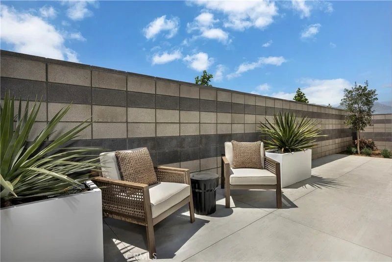 New construction home by Risewell Homes at Eave in Ontario. Desirable, end/corner location for this two-level townhome that's walkable to dog park, parks, trails, pool and lounge. Curb appeal aplenty with modern architecture, front patio + side courtyard, large windows top to bottom allowing for tons of natural light. Once inside find designer-curated finishes at Great Room/Dining/Kitchen, including LVP floors, Quartz counters, white flat panel cabinetry w/ bronze hardware, electrical options. Second level offers a large Primary Suite opposite secondary Beds/Bath and Laundry closet. Sleek Samsung appliance package, with washer/dryer/fridge, also included. The resort-style pool and lounge area (see photos) highlight this contemporary neighborhood that's hidden away from main thoroughfares yet so close to New Haven Marketplace, I-15, 91 and 60 travel corridors, The Station at Eastvale, and a variety of other shopping/dining/entertainment options. Seller concessions available. Construction underway, estimated April Move In.