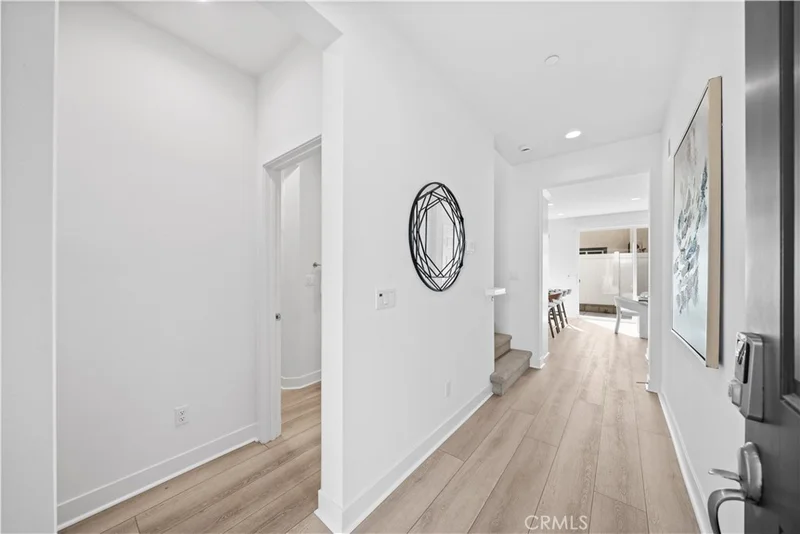 Beautiful north-south facing detached single-family home located in the core of the highly desirable master-planned Ontario Ranch community in Ontario. Offering 4 bedrooms and 3 bathrooms with approximately 2,053 sq.ft. of open-concept living space. The first floor features a convenient bedroom and full bathroom, ideal for guests or multi-generational living. Upstairs includes a spacious primary suite with dual vanities, soaking tub, separate shower, and walk-in closet, along with two additional secondary bedrooms and a shared full bathroom. The modern kitchen showcases white cabinetry, quartz countertops, stainless steel appliances, and a large center island that flows seamlessly into the dining and living areas. Fully paid-off solar provides long-term energy savings. Community amenities include a clubhouse and swimming pool. Prime central location directly across from a major shopping plaza featuring 99 Ranch Market, Costco, and In-N-Out, with easy access to the 60 and 15 freeways, and just minutes from Ontario International Airport and Ontario Mills. Move-in ready home in a highly convenient and thriving neighborhood. Move-in ready home offering comfort, convenience, and exceptional location.