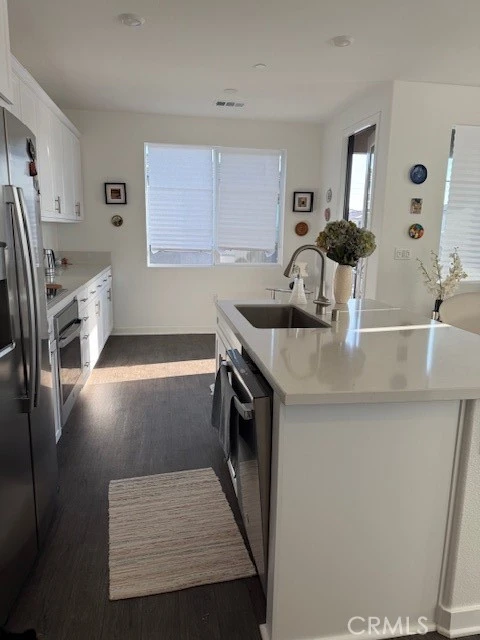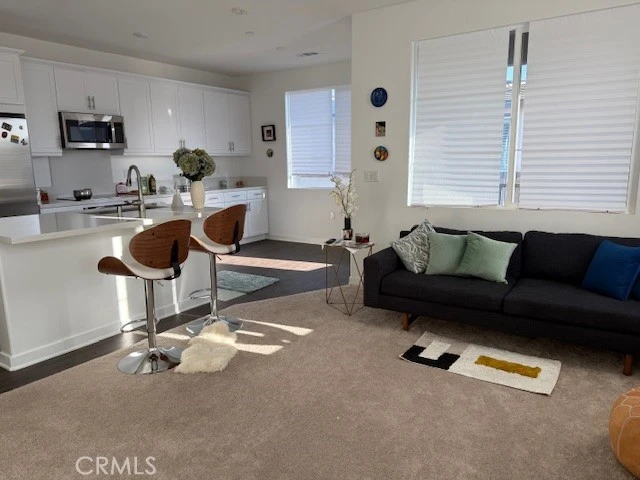Discover modern living in this stylish 1-bedroom, 1.5-bath townhouse located in a desirable newer Ontario community. Designed with comfort and functionality in mind, this move-in ready home offers a bright, open layout with high ceilings and contemporary finishes that create a welcoming atmosphere throughout. The main living space is filled with natural light and opens to a private balcony, providing a perfect spot to relax or entertain. The kitchen features quartz countertops, stainless steel appliances, and ample cabinetry, offering both style and practicality for everyday living. Upstairs, the spacious primary bedroom includes a walk-in closet and a private ensuite bathroom, creating a comfortable and private retreat. A convenient half bathroom on the main level provides added ease for guests. Residents enjoy a well-maintained community with landscaped grounds and a low-maintenance lifestyle. The property includes Mello-Roos taxes and leased solar panels. Ideally located in a rapidly growing area of Ontario, this home presents an excellent opportunity for first-time buyers, professionals, or investors. Schedule your private showing today and experience all this home has to offer