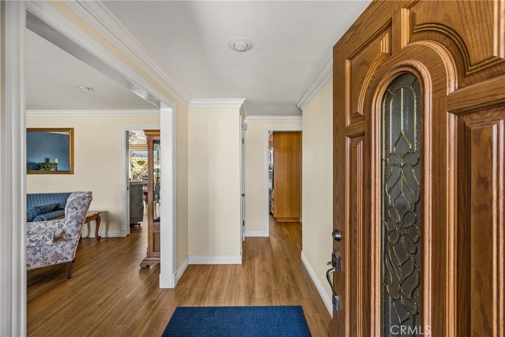 Welcome to this beautifully maintained 3-bedroom, 2-bath home that perfectly blends comfort, style, and versatility. Step into a spacious living room filled with natural light from a stunning picture window, anchored by a charming brick fireplace...ideal for cozy evenings or entertaining guests. The flexible family room offers endless possibilities, whether you envision it as a relaxed gathering space, a formal dining room, or a combination of both, all conveniently located adjacent to the kitchen. Throughout the home, you’ll find tasteful upgrades including wood laminate flooring, elegant crown molding, classic 6-paneled doors, double-pane windows, newer front door, mirrored wardrobes, ceiling fans and solid oak cabinetry throughout the home. The kitchen is a true highlight, boasting granite countertops, top-of-the-line appliances, reverse osmoses water filtration system and convenient pull-out drawers designed for both beauty and efficiency. An inside laundry room adds to the home's practicality. Outside, the home shines with outstanding curb appeal. The red brick and stucco exterior is complemented by beautifully landscaped front and back yards, featuring low-maintenance artificial turf and an aluminum-covered patio—perfect for outdoor dining or relaxing year-round. Located in a highly desirable neighborhood near the Old Town Orange Plaza, with easy access to freeways, hospitals, shopping, restaurants, and local breweries, this home offers the ideal blend of charm, convenience, and lifestyle.