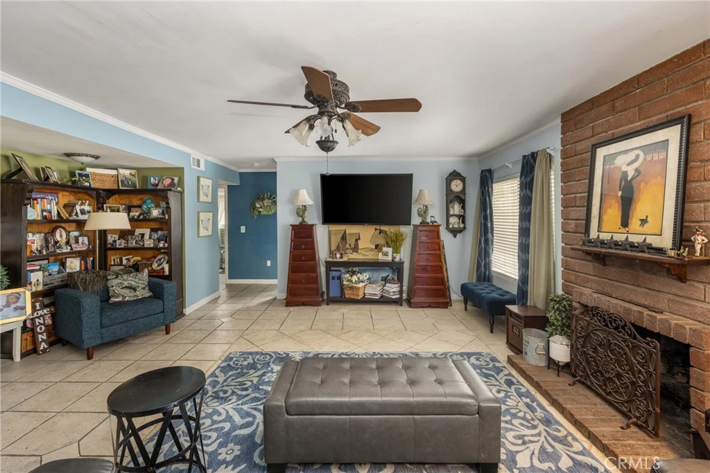 Located in the beautiful City of Orange, this wonderful, multi-generational home, or beautiful home with multiple options, is located at the end of a cul-de-sac beautifully landscaped with roses and cottage garden flowers, and separated by the large three-car driveway is a cute little orchard area with beautiful grapevines, apple trees, papaya, plum, and fig trees. The front yard has a beautiful used-brick courtyard and low fencing, making the grounds charming. The house is approximately 2,700 square feet and includes a large three-car attached garage with three parking spaces and a double-door (looking) entrance opening to the foyer, which has a staircase to the upstairs and a separate entrance to the main living area. As you enter into the main living area, you are welcomed into the charming family room with one of two beautiful fireplaces and open to the country kitchen with newer stainless steel appliances and a farm sink, overlooking the covered back patio and pool area that is ready to be landscaped as beautifully as the front yard. Access from the kitchen leads to the beautiful dining room and living room with high cathedral ceilings and double French doors leading to the front courtyard. Your laundry, full bath, and 4th bedroom are also in the downstairs area, as is access to your three-car garage. Upstairs, there is a beautiful grand suite with its own fireplace, upgraded mirrored wardrobe closet, and a full bath consisting of a separate double sink, vanity area, and walk-in closet, as well as a separate bath, shower, and toilet area. This beautiful suite is extremely large and feels even larger with its cathedral ceilings. The second kitchen, complete with its own laundry, is also on the second floor, as is another full bath, a large bedroom with triple mirrored wardrobe closet doors, and finally a large room, currently being used as another private suite with high cathedral ceilings. All bedroom and bathroom doors have been upgraded, along with other lovely improvements made through the years. This home gives you many options for how to enjoy it and is conveniently located near UCI Medical Center, CHOC, St. Joseph Hospital, Chapman University, and is freeway close to major connections. Angel Stadium, the Honda Center, and Disneyland are also nearby, adding to the incredible convenience and appeal of this beautiful Orange home.