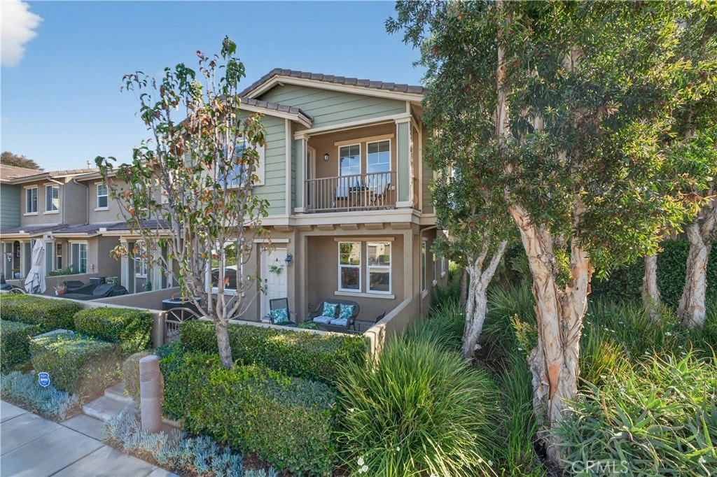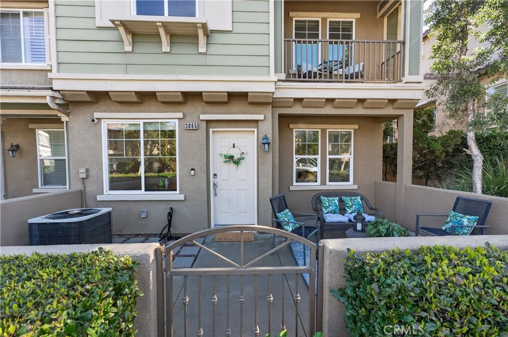 Welcome to 3065 N. Torrey Pine Lane, a beautifully upgraded end-unit residence in the highly desirable Riverbend community of Orange. This two-story home offers 1,627 square feet of thoughtfully designed living space with 3 bedrooms and 2.5 bathrooms, blending comfort, style, and convenience. Step through the single-door entry with keypad access into a light-filled interior featuring fresh new interior paint and rich hardwood flooring throughout the ground level. The inviting front gated patio creates a private outdoor retreat—perfect for morning coffee or evening relaxation. The upgraded kitchen is the heart of the home, showcasing quartz countertops, stainless steel appliances, recessed lighting, and a spacious island with a large sink and bar seating. Built-in banquet seating and a custom light fixture add warmth and charm, making this space ideal for everyday living and entertaining alike. The family room features soaring ceilings, abundant natural light, custom shades, and a cozy fireplace with gas logs. A separate living room with ceiling fan offers additional flexibility for gatherings or quiet evenings at home. A downstairs powder room with pedestal sink, tile flooring, and updated fixtures completes the main level. Upstairs, the primary suite offers plush carpet, ceiling fan, window shades, and a walk-in closet with mirrored door. The primary bath includes dual sinks, granite countertops, tile flooring, a separate soaking tub and shower, and newer fixtures. Two additional bedrooms provide versatility for family, guests, or a home office—one offering access to a private balcony and custom touches. The upstairs hallway bath includes recessed lighting and window shades. A convenient upstairs laundry area with tile flooring adds everyday practicality. Additional highlights include a two-car attached garage with overhead storage, a leased water softener system, and an end-unit location for added privacy. Riverbend residents enjoy access to a sparkling association pool and spa. Just across the street, a community park offers a playground and tennis courts—providing the perfect blend of recreation and neighborhood charm. Located in the vibrant city of Orange, this home combines modern upgrades, functional living spaces, and exceptional community amenities—an opportunity you won’t want to miss.