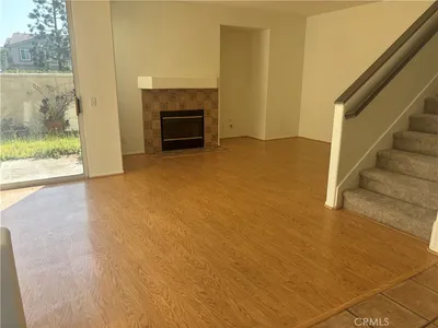 Desirable gated community of Cambridge II featuring a townhome-style condo with a private backyard and low-maintenance artificial turf. Spacious living room with laminate flooring and a cozy fireplace. Upstairs offers 3 bedrooms plus a versatile loft area. The large primary suite includes a walk-in closet and a separate tub and shower. Freshly painted and move-in ready. Convenient downstairs laundry room and direct access to a spacious 2-car garage. Located in a quiet, well-maintained community with easy freeway access, close to shopping, and adjacent to a public park.