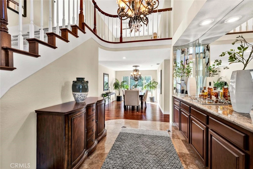 Are you looking for a turn key home with a fabulous views? This is the house for you. Open floor plan & recently painted interior and new carpets. As you arrive you will be impressed by the great curb appeal. As you walk up to the double door entry you will notice the professional landscaped entry. Through the front door you will find a very inviting interior which will feature an open house concept, vaulted ceilings and a very spacious living room for your entertaining. Adjacent to the living room you will welcomed to the formal dining room which will be perfect for your dinner guests. From the formal dining room you will enter into the open family room and remodeled kitchen. The spacious family room has a gas fireplace and will be a great area for you and your guests to congregate to watch those sporting events or just to relax around the fireplace. The kitchen is truly for the gourmet cook. The kitchen features a beautiful island, granite counter tops, beautiful wood cabinets, and stainless steel appliances. There is a downstairs bedroom & 3/4 bath for your guests. Upstairs you will find 3 bedrooms and a wonderful office area. The primary bedroom is very spacious and welcoming. The primary bathroom has been remodeled and features include granite counter tops, tile flooring, bath tub and separate shower. Also incudes a walk in closet. The bonus room located in the front of the house is large enough to be a game room, bedroom, office or reading room with a library which already have huge built in book cases. The back yard area will be great for entertaining. It has a grass area & a built in BBQ. Other backyard feature is the covered patio were you can enjoy a cup of coffee or a glass of wine. The valley views from the backyard are captivating. This home is located in High Horse Trails. There are stables which are available to residents on an availability basis, there is availability now for residents with horses. The home is close to shopping, freeways, parks & 241 toll road. This is a great area for those that like outside living.