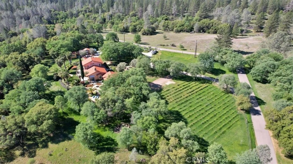 Traces of Tuscany! ~Villa Lavinia~ evokes images of classical elegance infused with Mediterranean flair. Reminiscent of lush Italian estates combining natural beauty and artistic refinement, the expansive 5.00 acres features a lavender field, a small producing vineyard and a vibrant olive grove with century old trees. The mature, irrigated landscape is highlighted by roses, geraniums, bergamot and cypress trees and much more. The fenced and gated rural homestead features a sophisticated and spacious stucco manor house with a clay tile roof as well as a separate guest cottage and an ample free-standing commercial grade kitchen with a wood fired oven. The professional agritourism facility is licensed for fundraising events and catering and allows for the continuation of an established and profitable bakery operation. Special touches in the main residence include antique, French made tile floors, hand carved limestone fireplaces, a carved oak entry door and murals by a renowned international painter. There is also an owned solar system with high capacity storage and a solar water pump and storage tank. Additional amenities are an underground wine cellar, travertine tile terrace with a custom metal pergola, a front French limestone drinking fountain and a rear cast iron garden fountain from Scotland circa 1890. The owners purchased the property in 2011 and embarked on a quest to create a serene sanctuary encompassing all essential elements for an organic, self-sustaining environment. The result is the successful blending of a gracious lifestyle with continental accents coupled with engaging home-based business opportunities. Horses and livestock are permitted. Located in a private but easily accessible setting on a paved street in a certified Firewise neighborhood, Villa Lavinia is literally down the road from shopping, services, schools and several lakes. Discover a distinctive architectural gem with exceptional design qualities that radiate with timeless appeal and character plus the energy and ambiance of a captivating country retreat.