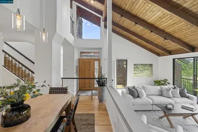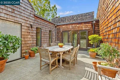 Showcasing style & quality, this level-in Orindawoods home offers an ideal setting with natural light, privacy & views. Corner location with walls of glass, high vaulted & beamed ceilings, hardwood floors throughout the main level. The thoughtfully designed & light filled floor plan is both functional & inviting. Two-car attached garage with interior access. True indoor/outdoor living. Spacious, beautifully updated kitchen with Andersen glass door to expansive courtyard patio. Living room features a modern gas fireplace with beautiful stone surround, wet bar and wall of glass to large deck. The private primary suite is a true retreat, featuring a glass French door to private deck & modern updated bath. Additional bedrooms provide flexibility for guests, family, or work-from-home needs—one ideally suited as an office with built-in desk & daybed. Oversized garage with storage loft, built-in cabinetry & 220V outlet for EV charging. Enjoy the coveted Orindawoods lifestyle, known for its tranquil setting & exceptional amenities, including pools, tennis club, manicured greenbelts, Woodhall community room & pond, scenic walking paths, BART shuttle. All just minutes from downtown, top schools, parks, library, farmer's market.