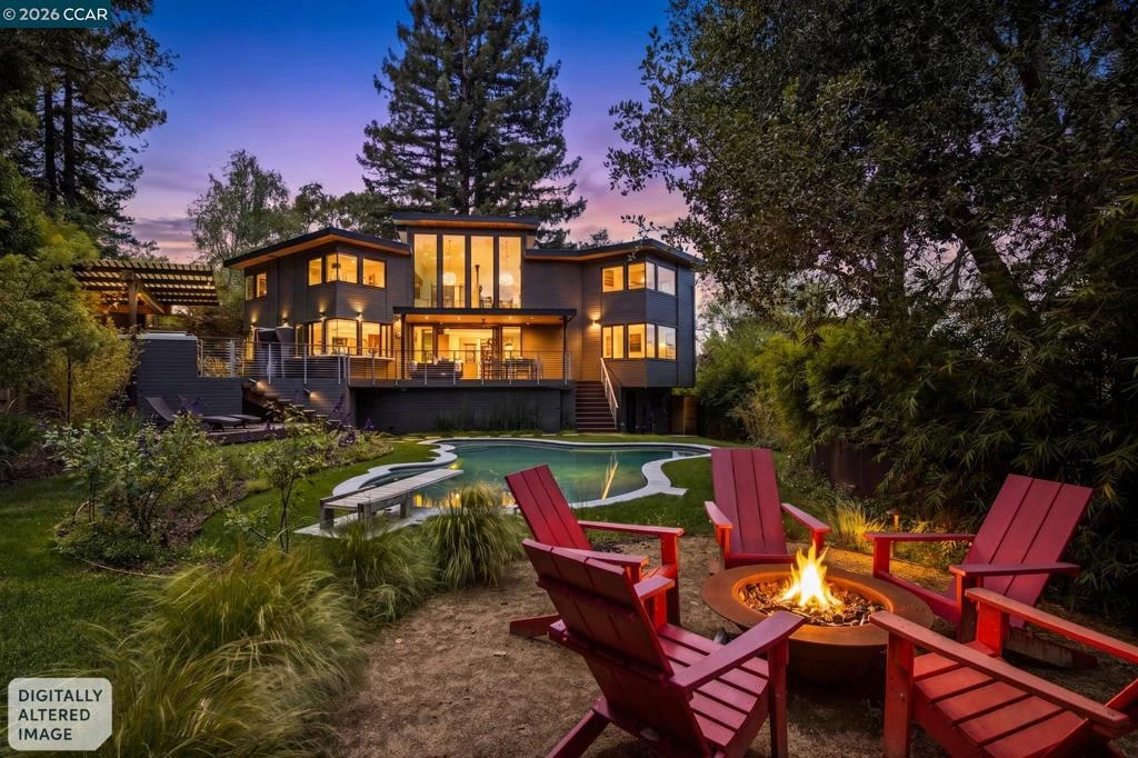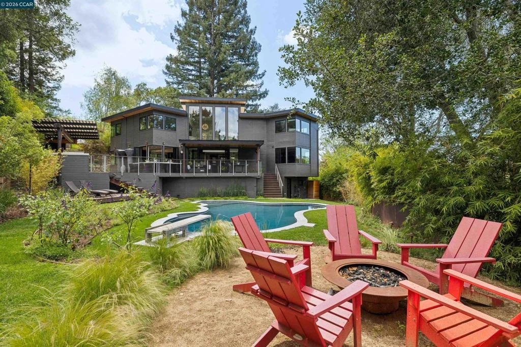 Stunning Modern Remodel | Luxury Living in Prestigious Orinda 4 BD • 4 BA • ±4,238 sq ft • ±0.50 acres • Remodeled 2019 Remodeled to the studs and fully rebuilt in 2019, this stunning contemporary residence is perfectly positioned near the Orinda Country Club on a serene, private cul-de-sac — just minutes from Hwy 24, downtown Orinda, and BART. All-new plumbing, electrical, and fiber optic Wi-Fi. Custom CLEAF soft-close cabinetry and Caesarstone countertops throughout. The chef’s kitchen features a Thermador 36" refrigerator & 36" freezer, WOLF stove/range ovens and microwave, two MIELE dishwashers, warming drawers, and a wet bar with wine refrigerator. La Cantina folding doors and pass-through windows open to the outdoor entertaining area for true indoor-outdoor living. Floor-to-ceiling Fleetwood windows and sliding doors, custom pivot front door, and a 20-speaker built-in Sonos system complete the picture. The lower level offers a mirrored home gym, bonus playroom, and built-in home office. Outside: refinished salt water pool, new therapeutic 8 person spa, fire pit, Primo smoker, 5-burner grill, full outdoor kitchen with fridge, dishwasher and ice maker, Outdoor 60 inch screen TV, Outdoor shower, EV plug in driveway, security cameras, two storage sheds, spacious work shop (255 square feet), new Trex decking, expansive grass play field, and a children’s playhouse — all within a fully gated, lush half-acre. Don’t Miss This Entertainers Dream!