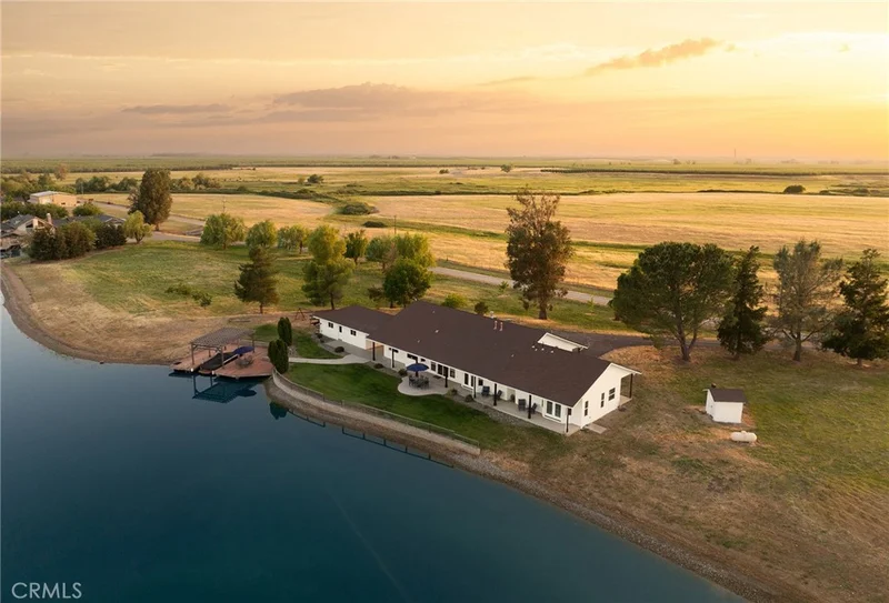 This incredible ski lake property offers the perfect blend of privacy, recreation, and breathtaking natural beauty, all set on 10 very private acres. From the back of the home, take in panoramic lake views, while the front showcases sweeping mountain and open country vistas. Whether you're looking for a full-time residence or a peaceful getaway, this lakefront retreat offers swimming, waterskiing, paddleboarding, fishing, or simply relaxing by the water. Enjoy access to the lake with your own private fixed dock, complete with a boat lift. The beautifully updated 3,007 sq ft home features 4 bedrooms, including two spacious primary suites, 3.5 bathrooms, two living areas, and a dedicated office with built-in storage. Fresh exterior paint gives the home a clean Mediterranean-inspired look, while large windows frame the lake views. A cozy family room with a freestanding wood stove adds warmth and charm. The kitchen offers lake views, freshly painted cabinetry, recessed lighting, stainless steel appliances, solid surface countertops, and a large peninsula with bar seating—ideal for entertaining. The main primary suite features French doors to the patio and lake, dual walk-in closets, and a dual-sink vanity. Down the hall are two guest bedrooms and a bathroom with dual vanities and a separate shower area. Privately situated, the second primary suite offers its own entrance, lake access, a walk-in closet, and a remodeled bathroom with dual sinks and a walk-in shower—perfect for guests or multi-generational living. Additional features include brand-new flooring in main areas, owned solar, two HVAC units, updated lighting and ceiling fans, and an oversized three-car garage with space for a boat. There’s also room for RV parking or future expansion, plus a variety of mature fruit trees. The private ski lake, shared with only three other properties, includes a slalom course for tournaments—offering a rare opportunity for competitive and recreational water sports. Conveniently located near I-5 with easy access to restaurants and shopping, and just a couple of hours from the Bay Area, this rare property offers an exceptional lifestyle of serenity, beauty, and adventure.