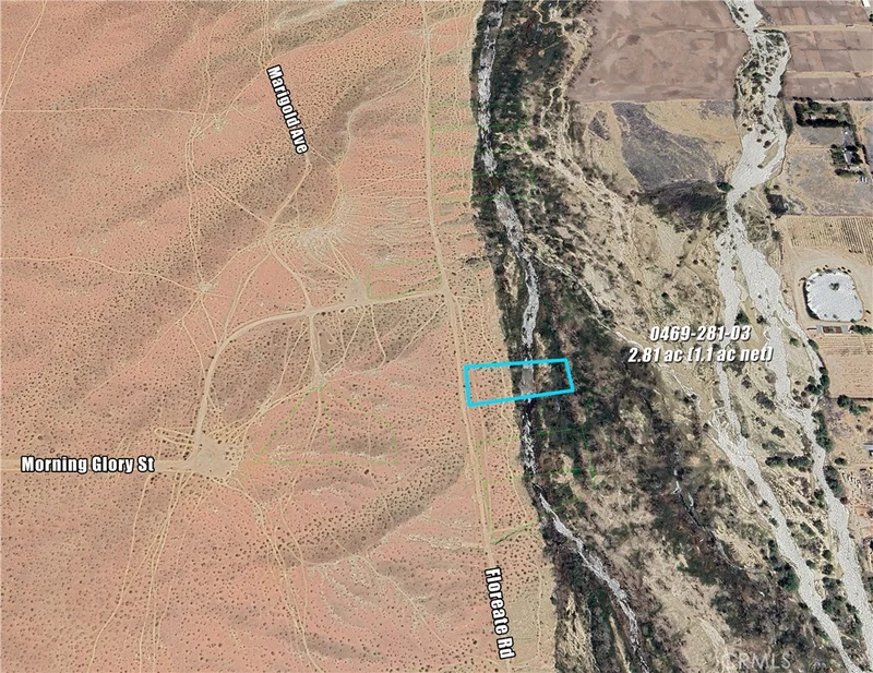 2.81 ac Rural Living parcel on Floreate Rd along the west side of the Mojave River in Oro Grande/Adelanto. River flows above ground in this area. Back half of lot drops down into River area. Access via Hwy 395 to Colusa Rd, to Helendale Rd, to Purple Sage/Morning Glory, to Floreate. 4x4 Vehicle recommended. Seclusion and the River call you. 9 Lots total available on/off Floreate (6 on River, 3 off). Please contact Listing Agent for more information.