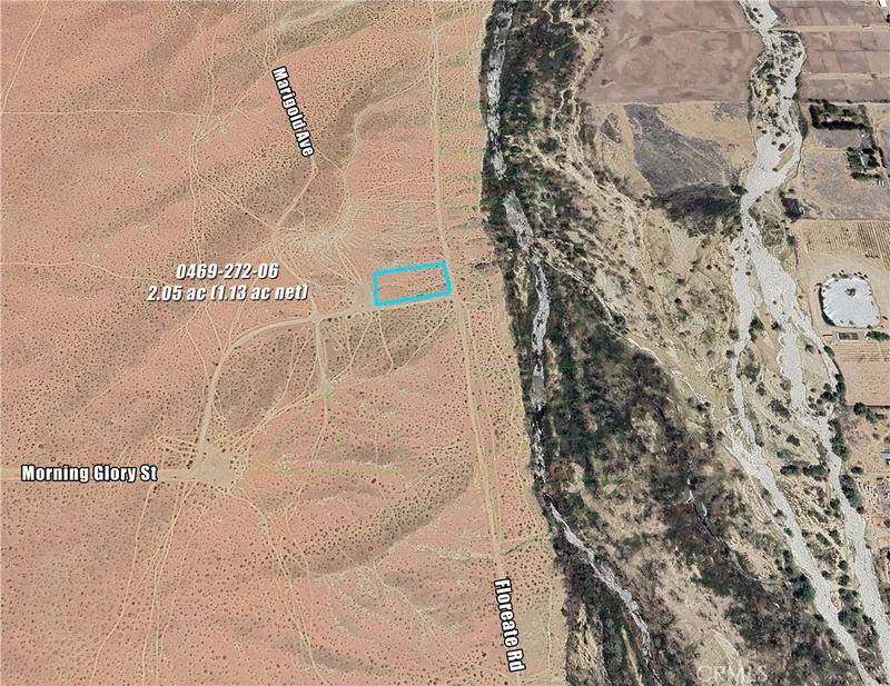 2.05 ac Rural Living parcel on Floreate Rd in Oro Grande/Adelanto. Floreate Rd runs along west side of Mojave River, which flows above ground in this area. Access via Hwy 395 to Colusa Rd, to Helendale Rd, to Purple Sage/Morning Glory. 4x4 Vehicle recommended. Seclusion and the River call you. 9 Lots total available on/off Floreate (6 on River, 3 off). Please contact Listing Agent for more information.