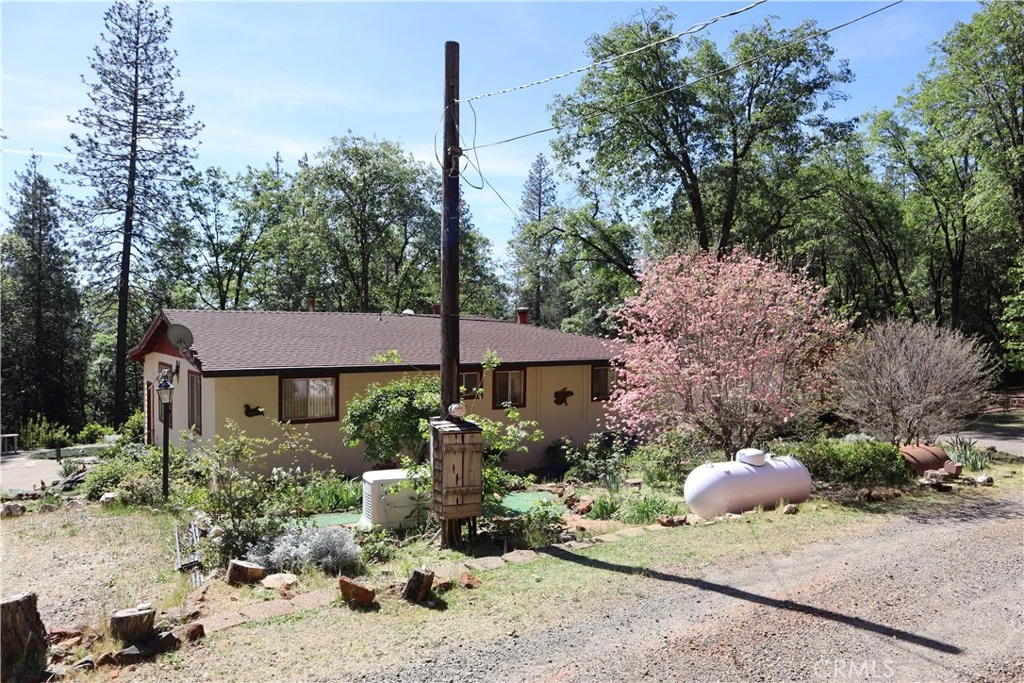 Your mountain oasis awaits in the serene community of Forbestown — ten acres of natural beauty, lush gardens, and towering oaks and pines shaped by decades of devoted care. Wander the property on owner-built pathways, whether on foot or by ATV, past raised retaining walls bursting with flowering shrubs and trees. A well-maintained fire-hardened perimeter — kept at strategic heights — gives you peace of mind without sacrificing beauty. Water storage is ample for both fire suppression and garden use, and a 22kW Generac Generator keeps life running smoothly when mountain power falters. A high-efficiency HVAC system ensures comfortable summers and cozy winters. The grounds include multiple concrete and pebble-stone patios, a detached two-car carport, a pass-through garage and barn, and a spacious gardening shed. This property is a labor of love — and it shows. Step inside through the enclosed mudroom and settle into a home that blends mountain simplicity with modern comfort. The living room overlooks the gardens and opens onto the patios. A single log-and-coal fireplace anchors the space. Step up to the dry bar for an end-of-day cocktail, then carry on to the primary bedroom and ensuite bath. The functional kitchen flows into a generous dining room. Down the hallway, a large second bedroom (currently used as a family room and office) offers abundant storage and closet space. A third bedroom features custom bunk beds with room to spare for seating and furniture. A full guest bathroom serves the hallway. A compact ADU with kitchenette and private bedroom rounds out the main house — ideal for guests or a rental opportunity. The unfinished basement provides plentiful storage, utility access, and laundry.