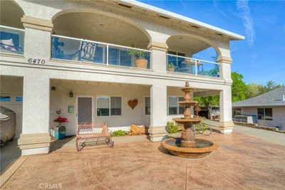 IMAGINE DAILY LIVING JUST MINUTES FROM LAKE OROVILLE WITH SWEEPING LAKE AND EAST FOOTHILL VIEWS....The expansive front deck is the perfect gathering space for family and friends, featuring glass panels designed to preserve the breathtaking scenery. This stunning 4-bedroom, 2.5-bath home offers nearly 2,300 square feet of beautifully designed living space that blends beauty with functionality. Outdoor enthusiasts will love the location—just minutes from the lake, marina, hiking trails, and year-round recreation. Fifty-two solar panels (2Tier solar system) provide power with a transferable monthly cost of $286.38 and seller has never had a true-up utility bill. The recently remodeled kitchen and dining area are truly exceptional. A magnificent onyx island countertop anchors the space, surrounded by custom cabinetry crafted from walnut, teak, and mahogany. The beautiful travertine backsplash, flooring, and baseboards add warmth, while a copper wall pot filler and a stunning travertine farmhouse sink elevate both style and function. The kitchen is complete with all new GE Café appliances with copper accents. The dining area features a custom wine rack, charming window seat, and a lake-view window. The vaulted living room showcases custom wood beams, recessed lighting, Venetian plaster accents, and a beautiful stone fireplace with Heatilator, all framed by large windows capturing the incredible views. Convenience meets flexibility with two entry options—a traditional front entrance or a rear driveway access that allows entry onto the second level with no stairs required. The primary suite enjoys spectacular lake views, private access to the front deck through large glass doors, and a peaceful retreat atmosphere. Another bedroom is located on this level along with a spacious laundry room with sink and cabinetry. The fenced backyard is beautifully landscaped and hardscaped with decorative rock features and a relaxing rock fountain. Colored stamped concrete enhances both the front and backyard. Designed for year-round enjoyment, the backyard includes a solar heated swim spa and hot tub, creating a private outdoor retreat. Additional features include: 2 bdrms. downstairs with a large bonus room, whole-house fan, ceiling fans throughout, gutter guards, ample parking in both front and rear, and an 8 x 18 hickory storage shed. This remarkable property offers the perfect blend of relaxed living, scenic beauty, and outdoor recreation just minutes from Lake Oroville.