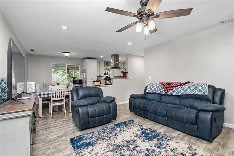 Set on .70 acres of flat, usable land, this thoughtfully updated home offers quality craftsmanship, privacy, and space to spread out. Updated in 2018 with careful attention to detail, the improvements throughout reflect a focus on durability, function, and style. Inside, a vaulted entry and open floor plan create a light and welcoming feel. The kitchen was fully remodeled in 2018 with quartz countertops and stainless steel appliances, and the home received extensive upgrades that same year, including new windows, central heat and air, an upgraded electrical panel, limestone tile, laminate and carpet flooring, fresh interior and exterior paint, new doors, fixtures, and LED recessed lighting. Pest clearance is already on file for added peace of mind. The separate, oversized primary suite features a spacious walk-in closet, offering a comfortable retreat. Outside, the property includes a large shop, ideal for storage, hobbies, or workspace needs. Surrounded by mature oak trees and located at the end of Skyline Way, a private drive, the parcel offers exceptional privacy with no neighbors on two sides. The yard areas were previously landscaped with drought-resistant plants, and an irrigation system remains in place, providing a solid foundation for a new owner to refresh or reimagine the outdoor spaces. This is a well-updated property with usable land, privacy, and a peaceful setting—ready for its next chapter.