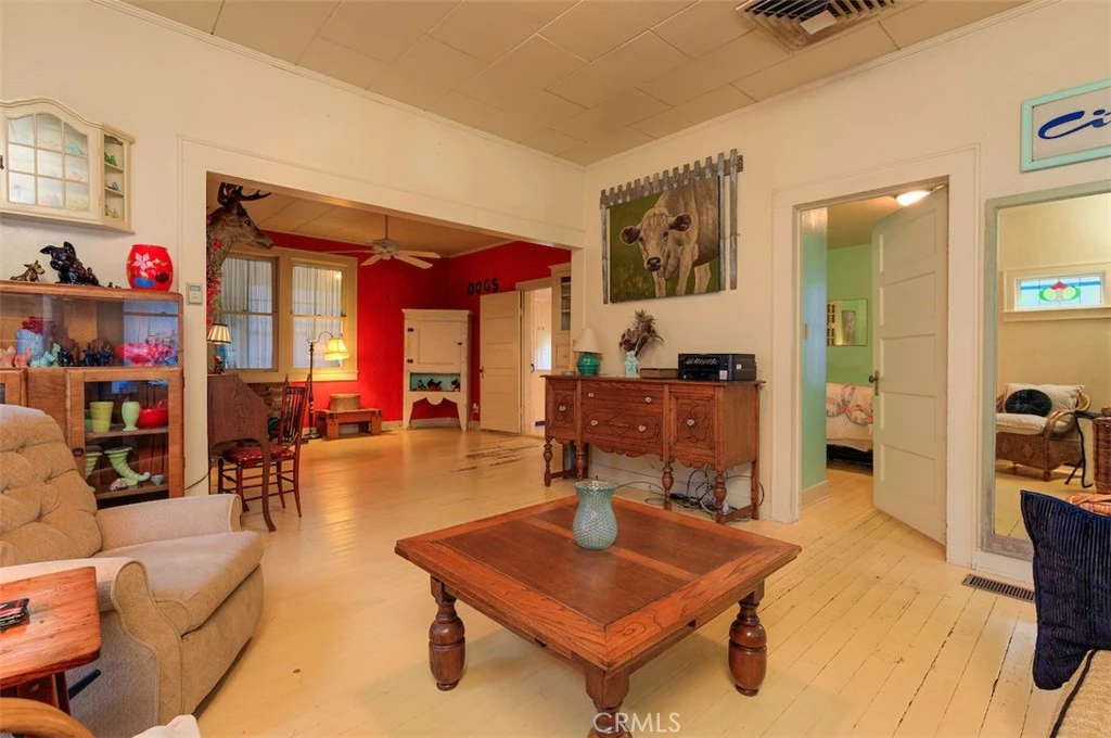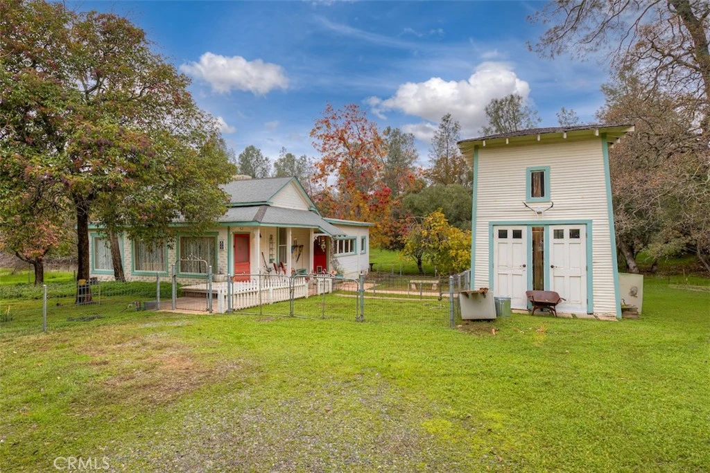 Hidden from the street and rich with character, this charming 1920 cottage in Oroville offers privacy, space, and timeless appeal. Tucked away on a quiet flag lot, the 2-bedroom, 1-bath home features 1,228 sq ft of inviting living space that blends original charm with thoughtful updates for comfortable everyday living. A welcoming sun porch sets the tone as you enter, leading into a warm interior highlighted by tall ceilings, original flooring in select areas, and classic details that reflect the craftsmanship of the era. The layout feels both cozy and functional, flowing naturally for daily living or entertaining guests. The kitchen includes a gas stove and offers plenty of opportunity to personalize while preserving its vintage appeal. Newer central heating and air, installed around 2017, adds modern comfort to this classic home. What truly sets this property apart is the land. In addition to the .29-acre homesite, the sale includes three neighboring parcels, creating an impressive combined footprint of approximately .87 acres. This expansive space allows for RV or trailer parking, gardening, outdoor entertaining, or simply enjoying extra room and privacy. The flag lot location keeps the home peacefully set back from the street, offering a quiet, secluded feel while still being close to town. If you’ve been searching for a property with charm, usable land, and privacy, this one checks all the boxes—a truly unique opportunity with room to grow, breathe, and make it your own.