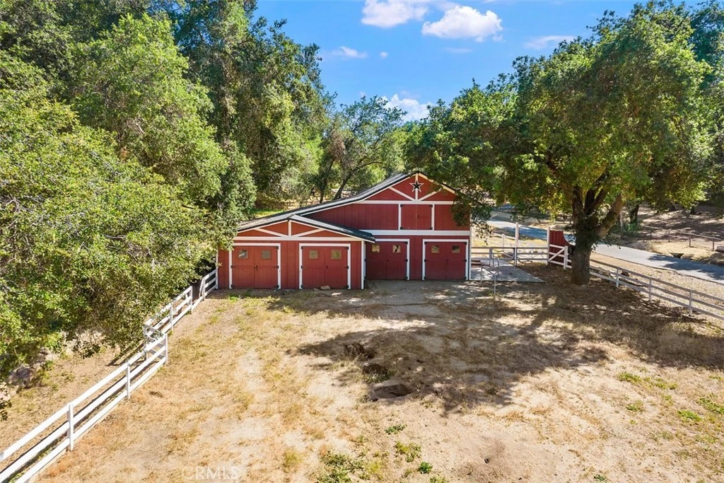 Tucked beyond the gates of Rancho Capistrano, where rolling hills meet the gentle rhythm of equestrian trails, lies a home that feels like a page from a storybook. Welcome to 35455 El Niguel Road—a serene retreat where morning light dances through century-old oaks and time seems to slow. Set on an expansive double lot, this private estate centers around a charming farmhouse, thoughtfully designed with vaulted wood-beam ceilings, warm plank floors, and panoramic windows that blur the line between indoors and out. A wraparound porch and screened-in veranda invite you to linger—coffee in hand—as horses graze beneath the trees or stars shimmer across a moonlit sky. Inside, the open layout blends rustic elegance with modern comfort. The main-floor primary suite is a true sanctuary, featuring a cozy sitting area, a soaking tub, and sweeping 180-degree views that make every sunrise unforgettable. Upstairs, two guest rooms share a charming Jack-and-Jill bath and overlook the sprawling grounds, while a private home office offers space to work—or simply dream. Step outside and nature continues to enchant. Wander among ancient Spanish oaks, granite boulders, and fruit trees that dot the landscape. Cool off in the sparkling saltwater pool, bask in the southern sun, or explore the 1,300-square-foot barn with two large stalls, one smaller stall, and a spacious corral—a haven for horses or anyone drawn to the tranquility of ranch life. A second barn provides additional storage or flexible space for creative projects, hobbies, or adventure. Whether you're seeking a peaceful short-term stay or a year-long escape, this furnished home offers a rare luxury: stillness. Here, the days stretch longer, the stars shine brighter, and the world feels beautifully far away. Welcome to Rancho Capistrano—where life unfolds at the pace of nature.