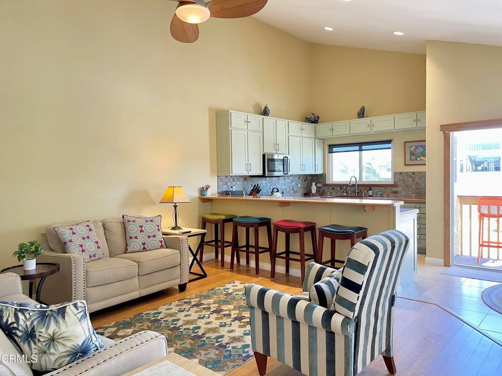 Furnished 3-bedroom, 2-bath home with ocean views just steps from Channel Islands Harbor and Hollywood Beach. This professionally managed property features a southwest-facing balcony off the kitchen, perfect for enjoying sunsets, surfers, and sailboats. The open kitchen offers stainless steel appliances, breakfast bar seating, and dining for up to 6.The primary suite is located on the first floor with a queen bed, en-suite bath (separate shower and jetted tub), and private patio access. Two additional bedrooms include a queen bed and a full bed with workspace and rooftop balcony access. Upstairs bath includes dual sinks and tub/shower combo.Enjoy multiple outdoor spaces including a rooftop deck with ocean, mountain, and night sky views. Additional highlights include 3 smart TVs, WiFi, in-unit laundry, garage parking for 2 cars (plus driveway parking), and beach gear.Located within walking distance to restaurants, harbor activities, and Sunday farmers market. Easy access to Ventura, Santa Barbara, and local beaches.30+ day fully furnished rental; seasonal rates apply.