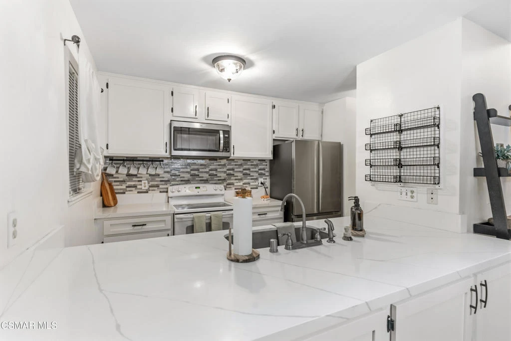 Coastal comfort meets modern convenience in this beautifully updated Oxnard condo, ideally located just minutes from the beach, Channel Islands Harbor, Seabridge Marina, and vibrant local shopping and dining.Step inside to a bright, open-concept living and dining area featuring wide plank wood-style flooring, neutral tones, and seamless indoor-outdoor flow. Sliding glass doors lead to a private enclosed patio, a charming retreat complete with string lighting, mature trees, and space for outdoor dining and entertaining. It's the perfect extension of the living space for enjoying Oxnard's year-round coastal climate.The updated kitchen showcases quartz countertops, crisp white cabinetry, stainless steel appliances, modern hardware, and a breakfast bar that opens to the dining area ideal for entertaining or everyday living. The layout maximizes functionality while maintaining a clean, contemporary aesthetic.This thoughtfully designed floorplan includes spacious bedrooms filled with natural light and generous closet space. Bathrooms have been refreshed with updated vanities, modern lighting, and timeless finishes. A convenient in-unit stacked washer and dryer adds everyday practicality.Located in a desirable Oxnard community near parks, schools, marina access, beaches, and commuter routes, this home is ideal for first-time buyers, FHA and VA buyers, investors, or anyone seeking a low-maintenance coastal property.If you're looking for updated, move-in ready, and close to everything Oxnard coastal living has to offer, this is it.
