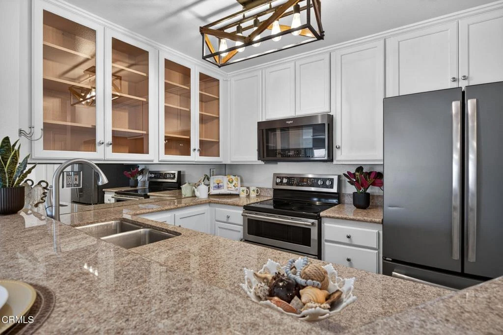WATERFRONT VIEWS/PRIME LOCATION!!! Welcome home to this wonderful, rarely available, coastal retreat in the gorgeous Channel Islands harbor area. This, large, corner, 2 bedroom 2 bath unit, boasts one of the largest floor plans along with an extended balcony/deck off both the living area and bedrooms. You can relax and unwind or enjoy entertaining taking in the magnificent views, ocean breezes and stunning sunsets. Neutral colors, floor to ceiling mirrors, and dual pane windows add to the brightness and expand the views of this turnkey home. Kitchen and bathrooms have been tastefully updated. The kitchen boasts newer stainless appliances including a Bosch dishwasher, microwave, double oven with convection and refrigerator. Enjoy meals at the convenient breakfast bar, dining area or outside al fresco. White cabinetry & crown molding throughout. Updates include luxury vinyl flooring, ceiling fans, newer lighting and bathroom tub/shower enclosures. The primary suite is it's own oasis with sliders leading to a private balcony and water views. The primary bathroom has a large tub for relaxing, separate vanity area and a large walk-in closet with built-in shelving. A large guest bedroom includes desk area and a walk in closet. This complex provides a secure lobby, indoor corridors & has an elevator for your convenience as well as laundry facilities on each level. Assigned, enclosed parking for your unit includes 2 spaces & some garage storage. There is ample outdoor parking for your guests. Impressive amenities include, several heated pools, spa, gym, sauna, tennis courts, club house, bbq area, tennis courts and more. This is not just a home but a lifestyle and retreat! You will love being minutes away from beaches, boating, water sports, dining, shopping, outdoor concerts, farmer's market, beach festivals and the many amenities this coastal location offers. Come be a part of the Channel Islands premier lifestyle along the coast.... You'll be glad you did!