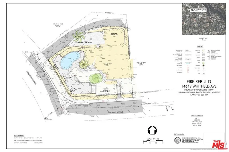 Rare 11,000 square foot mostly flat and elevated corner lot near the Palisades Village. The property is cleared and ready for brand new construction of a large 3-level new home - upwards of 9,000+ square feet under current building codes (not in the coastal commission zone). 14643 Whitfield Ave. sits above the Alphabet Streets and a new construction home will have breathtaking panoramic ocean views and a spacious backyard on its larger-sized lot. Additionally, this corner, coupled with a short road in the back, creates flexibility in designing the exact location of a garage. The property resides just moments from the Palisades Village known for boutique shopping and award-winning restaurants; top-rated local schools, scenic hiking/mountain biking trails, bike paths, and world-class beaches.Adding to this unique offering, this property was last on the market 65 years ago. This is not simply another Pacific Palisades land sale; it is a chance to claim a piece of Palisades history that is nestled within the coveted Chautauqua Heights subdivision, celebrated for its expansive lots and iconic ocean views. The previous/original home was the 53rd house ever built in the Palisades back in 1924, a residence cherished for generations. Its story speaks to permanence, heritage, and the timeless allure of this coastal enclave. And now it's ready for the next chapter and will be part of the resurgence of the Pacific Palisades.EPA (Phase 1) remediation & debris removal (Phase 2) are both complete. The foundation has also been removed to prepare for new construction. New home builds are well underway in the neighborhood, with the Caruso Village set to reopen in 2026. Some schools are already back and some businesses are reopened, and others are slated to reopen. Once complete, the Pacific Palisades will be more beautiful than ever before as it's still one of the most highly desired coastal enclaves in all of California.