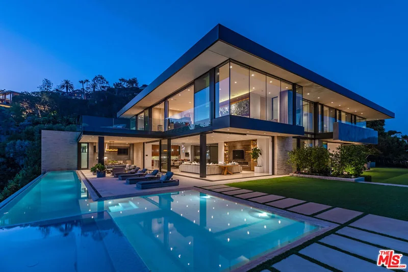 The Perfect Blend of modern architecture, panoramic views, A+ Location and every conceivable amenity. Designed by Paul McClean and built by Tyler Construction to the highest standards. Sited on nearly 2/3 acre promontory with wrap around views of the Pacific Ocean to Downtown Los Angeles. The location is unparalleled in the Palisades Riviera. The centerpiece of this architectural jewel is a 3-story waterfall/courtyard with walls of glass on 3 sides. Envisioned for entertaining on a grand scale, the living room opens to main lawn and the dining room soars with double height ceilings. Gourmet Kitchen and family room adjacent to large infinity-edge pool and covered dining - all with spectacular views to the West. Upstairs, 5 major bedrooms suites, including a primary that rivals the finest hotels in the world. 7 bedrooms in total, makes for an incredible family estate. The Lower level includes game room with bar, wine cellar, state-of-the-art cinema and gym. Car museum with turntable completes this most special offering. One of only a few modern view estates in the Riviera, iconic in every way. Shown only to prequalified buyers.