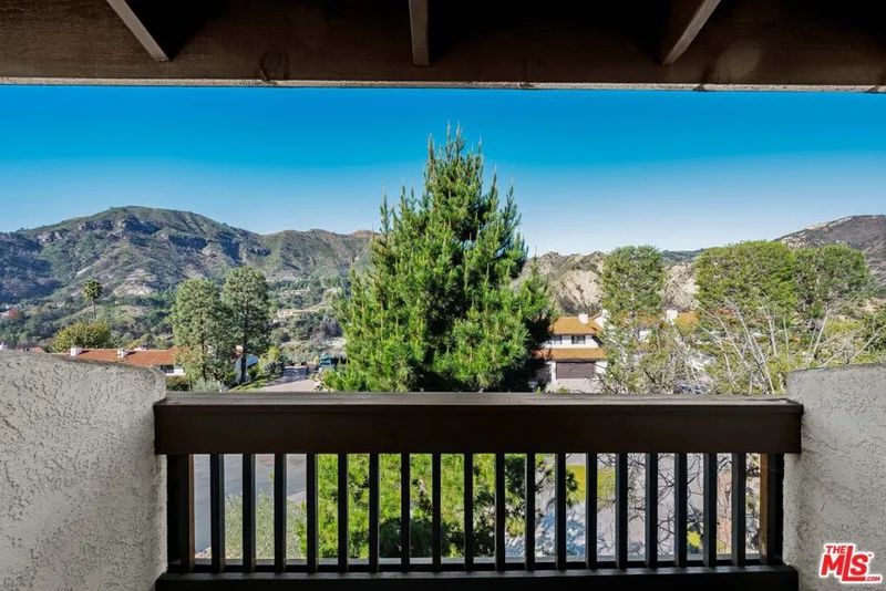 Stunning Mountain Views & Resort-Style Living in the Palisades Highlands! This coveted end-unit Michael Lane Villa townhome offers nearly 2,500 sq ft of refined living across three thoughtfully designed levels. Framed by dramatic vistas of the Santa Monica Mountains, the home seamlessly blends tranquility, elegance, and versatile functionality. A welcoming front patio and dedicated foyer introduce the residence and open to a generous multi-purpose flex space - perfect as a den, library, sitting room, creative studio, gym, or guest suite - complete with a wet bar and a full en-suite bath. Enjoy access to the expansive private patio overlooking sweeping canyon and mountain scenery, creating an exceptional indoor outdoor flow ideal for relaxation or entertaining. The mid-level conveniently offers direct access from the private two-car garage and features an airy formal living room with soaring ceilings, a fireplace, and a private balcony capturing stunning mountain and canyon views. The adjacent formal dining room with views is perfect for large gatherings and connects effortlessly to the spacious kitchen, with ample cabinetry and storage, granite countertops, and a charming breakfast area. A powder bath completes this level. Continue upstairs to the grand primary suite - a serene retreat with its own sitting area, cozy fireplace, private view balcony, expansive walk-in closet with two additional closets, and a luxurious en-suite bath designed for comfort and unwinding. A spacious second-bedroom suite offers excellent closet space, a beautifully updated bathroom and provides flexibility for guests or family. Additional highlights include high ceilings, multiple balconies, and the extra natural light and privacy afforded by an end-unit setting. Residents enjoy access to resort-style community amenities, including a beautiful pool/spa, sauna, fitness center, 2 guest parking spaces conveniently located behind this home's garage, and an HOA that includes water and ACS Palisades Highlands security. This exceptional residence delivers a rare combination of stunning views, surrounding natural beauty, and spacious sophisticated living in one of the most picturesque enclaves of the Palisades Highlands. NOTE: Some photos have been virtually staged,