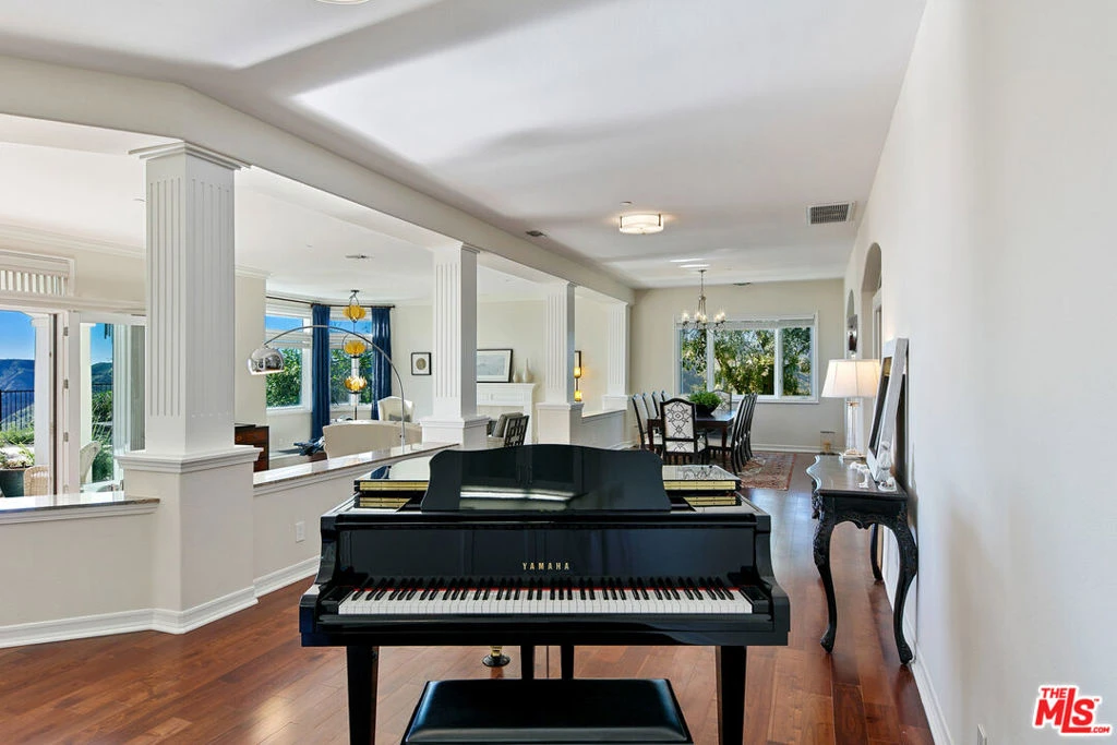 This is an exceptional opportunity to own one of the most sought-after open floorplans with head-on ocean, Catalina, and mountain views in the prestigious guard-gated Enclave community of the Palisades Highlands. A pair of double doors opens to a dramatic two-story marble entry, setting the tone for the light-filled interiors beyond. The grand living spaces offer flexible layout that currently accommodates a formal dining room, music room, sunken living room with fireplace, and a family room with a wet bar. They are framed by walls of picture windows and French doors, capturing sweeping views and bathing the home in natural light. The French doors open to a landscaped backyard with a covered patio and a raised sun deck with outdoor kitchen area, creating a seamless indoor/outdoor flow and an inviting setting for gatherings or quiet enjoyment of the surroundings. The spacious kitchen features a center island, granite countertops, abundant cabinetry, and a breakfast area that opens to the dining room. A private bedroom suite tucked behind the bar area on the main floor is well suited for guests, extended family, or live-in assistant. Upstairs, the expansive primary suite offers breathtaking views from every window and includes a sitting area with fireplace, French doors to a large private balcony, a spa-like marble bathroom, and a custom walk-in closet. The second level also features an elegant wood-paneled library, two additional bedrooms with private balconies that share a bathroom, a third bedroom with an en-suite bath, and a spacious laundry room with sink and ample linen storage. There is a 3-car garage with direct access. The home was extensively remodeled in 2014. During the Palisades Fire, the neighboring properties on both sides were lost. This residence appears to have sustained some structural damage; Buyer to do their own due diligence as to the extent of such damage. Cracked and broken windowpanes have been repaired. The property presents a unique opportunity for a new owner to reimagine and restore the home to their own vision, creating a truly personalized private sanctuary with stunning views. Residents enjoy access to the resort-style Summit Club, featuring a fitness center, party room, heated lap pool and spa, tennis and pickleball courts, sports courts with basketball hoops, playground, and grassy park with walking trails. Additional access is provided to gated Highlands Park, which features a playground and dog park along Palisades Drive.