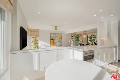 Perched on the rim of Palisades Drive with stunning views, this exquisitely redesigned corner townhouse is a rare, view home reimagined by designer Joleen Porcaro-Duddy. Flooded with natural light, the main living area features soaring ceilings, expansive windows framing the canyon, and a striking fireplace anchoring the living, dining, and chef's kitchen, finished in crisp whites with refined gold accents and top-tier materials throughout. The primary suite is a serene retreat with a sunlit reading nook overlooking the canyon, a spectacular walk-in closet, and ensuite bath. The lower level offers a dramatic glass-entry door, private office, full bath, and an expansive bedroom/den or flexible entertaining space, currently styled with a bar and custom-fit pool table, opening to a secluded deck ideal for entertaining. Iconic views, flawless design, and true move-in readiness, this one truly sings.