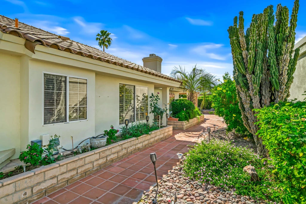 Live close to the Indian Wells Tennis Gardens, Home of the BNP Paribas Open! The largest ATP Tour & WTA Tour combined two week event in the world! Live the Palm Desert dream at DESERT BREEZES with LOW HOA dues. This home features 3 bedrooms and 2 bathrooms. Updated kitchen with granite counter tops, stainless appliances, beautiful wood flooring in the living room with fireplace.The Seller added a beautiful built in bar in the living room! The large primary suite is separate from the 2 guest bedrooms. All bedrooms have new ceiling fans with individual remote controls. Inside laundry room and gorgeous outdoor living area!