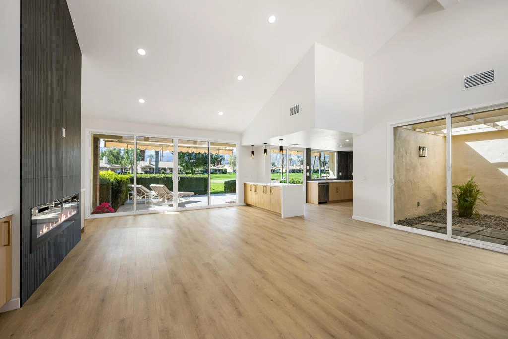 LOCATION, LOCATION, This 300 MAX plan is rare to market with breathtaking panoramic SOUTH mountain views above the 4th green of the south course. Experience unparalleled luxury with this REIMAGINED and REMODELED condo with no expense spared, featuring 2 spacious bedrooms, plus office/den, and 2 elegant bathrooms. The open kitchen is a statement of elegance and performance, offering premium Forno stainless steel appliances including a 6-burner natural gas range, custom cabinetry, quartz countertops, imported tile accents, and an integrated workstation sink. The living room boasts a sleek linear fireplace and theater area with 180-degree views. The home was crafted with precision and intention with luxury in mind. With its premium location and designer upgrades, By DPS Renovations & Designs. This home stands as a commitment to Monterey Country Club luxury living. Monterey Country Club offers: 27 holes of golf, 13 tennis courts,20 Pickleball courts, Bocce Ball Courts, 37 Pools & Spas and Clubhouse & Fitness Center, All just minutes from El Paseo shopping, fine dining, hiking, Palm Springs Airport, and more. Don't miss this rare opportunity--schedule your private showing today!