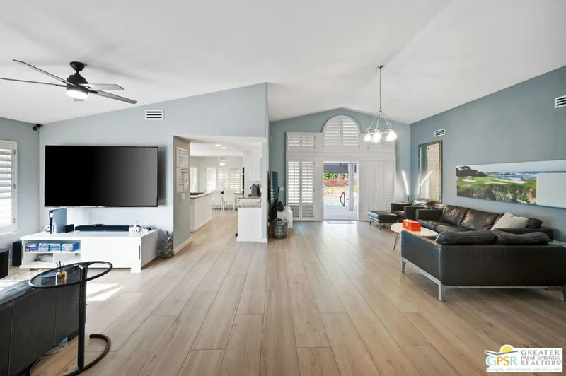Welcome to 39141 Sweetwater Drive, a beautifully updated home nestled within the hidden gem community of Avondale Country Club. From the moment you step inside, soaring vaulted ceilings and an expansive, light-filled living room create an inviting sense of space and comfort. A stylish built-in bar adds the perfect touch for entertaining guests or enjoying a relaxed evening at home. Designed with privacy in mind, the home features two spacious primary suites situated on opposite ends of the floor plan, each offering modern, upgraded bathrooms for comfort and convenience. Rich, large plank tile flooring throughout the home adds warmth, durability, and timeless elegance. Step outside to your own private resort-style oasis. The backyard is ideal for both relaxation and entertaining, featuring two covered patios, a built-in BBQ, and a sparkling pool and spa with a tranquil waterfall feature perfect for soaking up the desert lifestyle. The garage is equipped to accommodate an electric car charger, adding modern convenience to this exceptional property. Residents of Avondale Country Club enjoy access to outstanding amenities, including tennis and pickleball courts, a guard gate, a clubhouse, a fitness center, a driving range, and a beautifully maintained golf course.
