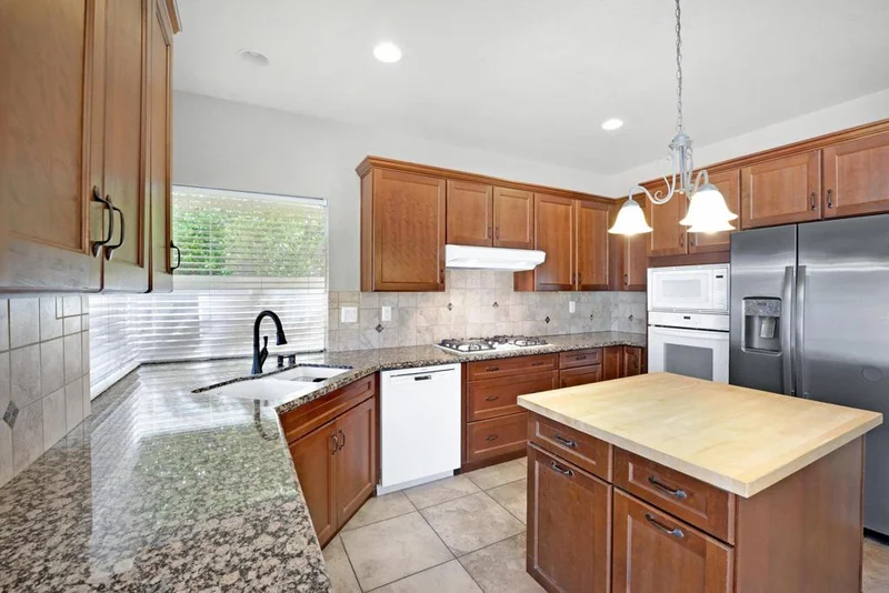 A Home That Feels Like a Retreat!On solar, internet and cable included.Step inside and you're welcomed by an airy open floor plan with soaring vaulted ceilings and a beautiful stained-glass window that fills the entry with color and natural light. The spacious living room, anchored by a cozy fireplace with both wood-burning and gas-starter options, creates the perfect setting for relaxing evenings or gatherings with friends.Soft carpeting adds comfort throughout the bedrooms and den, while the generous primary suite offers a peaceful escape with dual vanities and two large closets. The second bedroom enjoys its own private access to a full bath, and the third bedroom with custom closet organizers works beautifully as a guest room, home office, or creative space.The kitchen is designed for everyday living and effortless entertaining, featuring granite countertops, a tile backsplash, rich dark-wood cabinetry, and a brand-new stainless-steel refrigerator. A butcher-block island invites cooking and conversation, and the adjoining dining nook with sleek tile flooring is perfect for morning coffee or casual meals.Outside, low-maintenance desert landscaping surrounds a spacious backyard and extended side yard--ideal for outdoor dining, gardening, or simply enjoying the sunshine. The oversized 3-car garage includes a dedicated golf-cart entry with direct access to Woodhaven Country Club's path and amenities, adding convenience and charm.Set within the serene Whitehawk community known for its peaceful atmosphere, wide private streets, and friendly neighbors this home offers the perfect blend of comfort, community, and convenience. With premier golf, great dining, and world-class shopping just minutes away, it's a place where everyday living feels like a getaway.