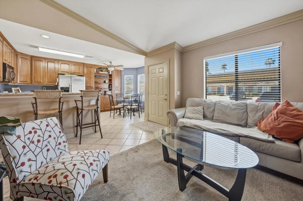 Charming 2-bedroom, 2-bath condo located in the desirable Royal Palms Condos in Palm Desert. This inviting home features granite countertops, stainless steel appliances, and elegant crown moulding throughout. Enjoy a beautiful private patio that opens to a lush greenbelt -- perfect for relaxing or entertaining. The community offers two sparkling pools and spas and is centrally located near shopping, dining, and entertainment. A wonderful opportunity to enjoy comfortable desert living in a prime location! Buyer to verify accuracy of information provided.