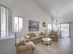 OFFERED TURNKEY FURNISHED ** This popular Augusta Plan is light/bright & situated on a emerald green greenbelt with two spacious bedrooms, two full baths and approx. 1091 sq. ft. The master bedrooms has soaring ceilings and sliders to the back patio! Tiled throughout with ceiling fans as well. Large living room with fire & ice fireplace & a one car garage with storage space. If you are a golfer, you will love that you never have to leave the community to golf. No membership needed. You can pay as you play or purchase a membership. Palm Desert Resort Country Club is close to shopping, restaurants, markets and festivals. There is a $40 per month food and beverage fee. Call or stop by Clubhouse for details. The neighborhood features 20 pools & spas, a 24/7 guard gated entry, an 18-hole par 72 golf course with a pro shop, restaurant, tennis and pickle ball facilities and is vacation rental friendly with a 3 day / 2 night minimum. Make money even when you're not there! A charming condo just waiting for you! Beautifully furnished.