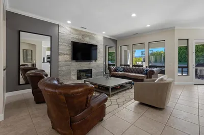 Stunning Venezia Home! Welcome to this exceptional 4-bedroom, 3.5-bath residence offering 3,173 sq. ft. of luxurious living space on an expansive 15,545 sq. ft. pie-shaped lot in the heart of Palm Desert.Designed for both comfort and entertaining, this home features a spacious open floor plan complemented by custom shutters and beautiful finishes throughout. The gourmet kitchen is equipped with KitchenAid stainless steel appliances, perfect for any home chef.Step outside to your completely renovated backyard oasis, featuring elegant white porcelain tile flooring, a refinished pool with upgraded tile, and multiple outdoor living spaces. Enjoy three fireplaces--one indoors, one in the courtyard, and one in the backyard--creating warm and inviting areas for relaxation and entertaining, mature ficus trees surround the yard for added privacy. Both front and back yards feature low-maintenance artificial turf and beautifully designed landscaping.Additional highlights include:Owned solar system for energy efficiency2-car garage plus golf cart garagePrivate gated communityExpansive pie-shaped lot offering extra space and privacy Indoor-outdoor living at its finestIdeally located just minutes from world-class shopping and dining on El Paseo this home offers the perfect blend of luxury, comfort, and convenience.