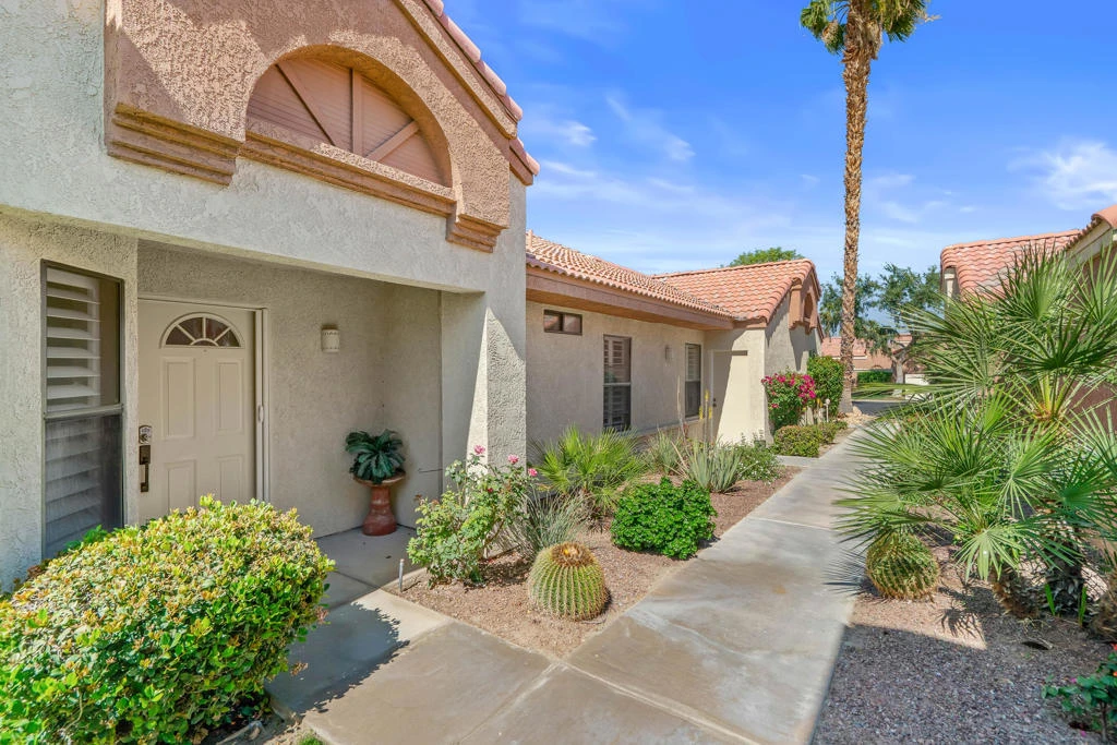 This thoughtfully designed condominium within Oasis Country Club offers a rare combination of comfort, privacy, and scenic beauty. Positioned along the 18th green, the residence captures sweeping views of the surrounding mountains--south and west--framed by a tranquil water feature across the fairway and generous separation from neighboring homes.The interior features two spacious primary bedroom suites, each offering privacy and flexibility--ideal for full-time living or hosting guests. A well-appointed kitchen includes dual pantries, providing ample storage and functionality. A powder room adds convenience for visitors, while the attached garage enhances everyday ease. With only one shared wall, the home maintains a sense of quiet and seclusion.Oasis Country Club is recognized for its welcoming atmosphere and active lifestyle. Residents enjoy access to 18 pools and spas, 22 lakes, and a par-3 golf course known for its engaging and challenging play. Recreational amenities include pickleball and tennis courts, a fitness room, and a dog park.The clubhouse serves as a central gathering place, featuring both casual and formal dining options, along with a lively calendar of social activities. Additional highlights include a lending library, card room, and beautifully maintained grounds with fruit trees throughout the community.Whether seeking a full-time residence or a seasonal retreat, this home offers immediate connection to an established and vibrant community.
